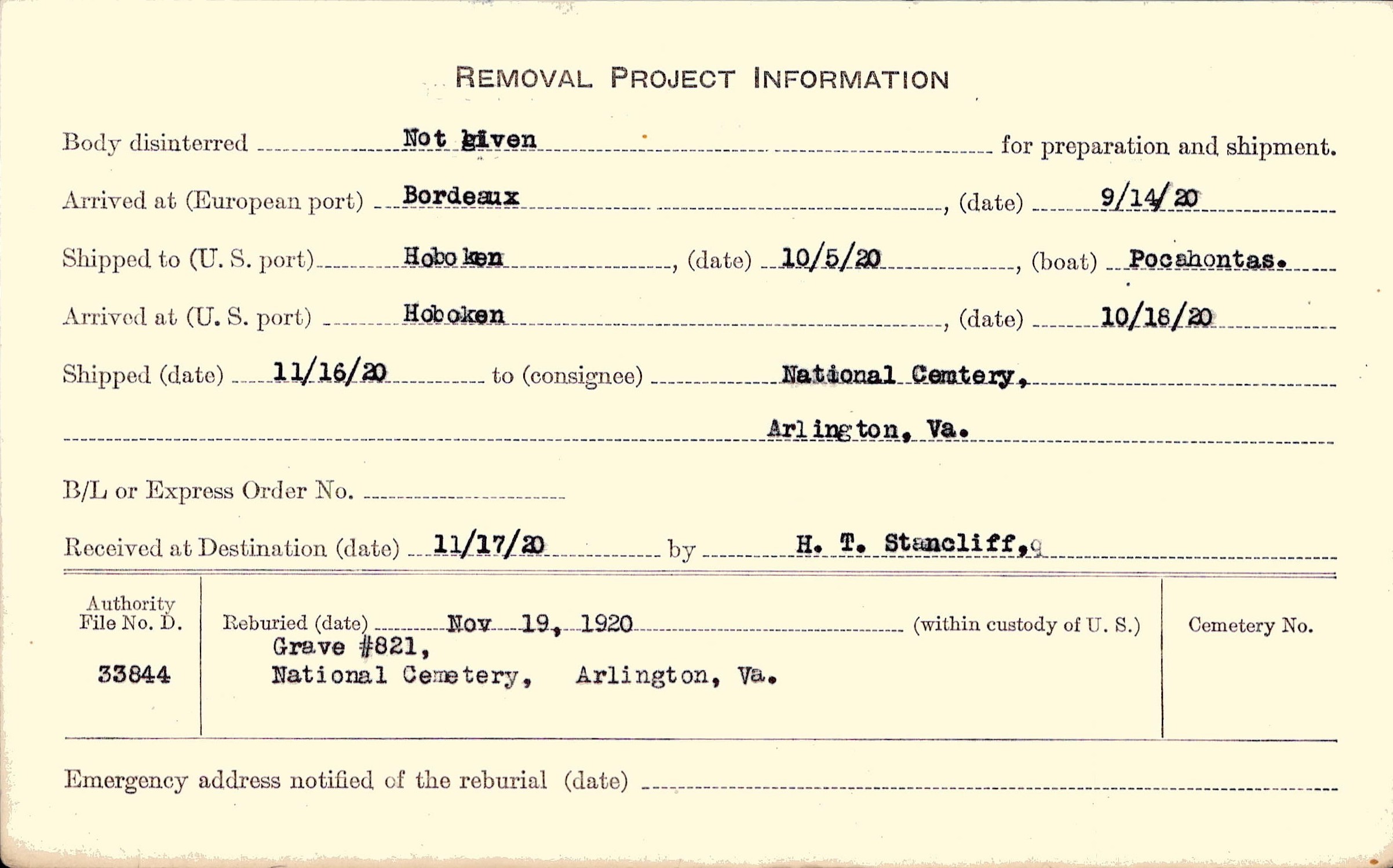 | Reburied (date): |