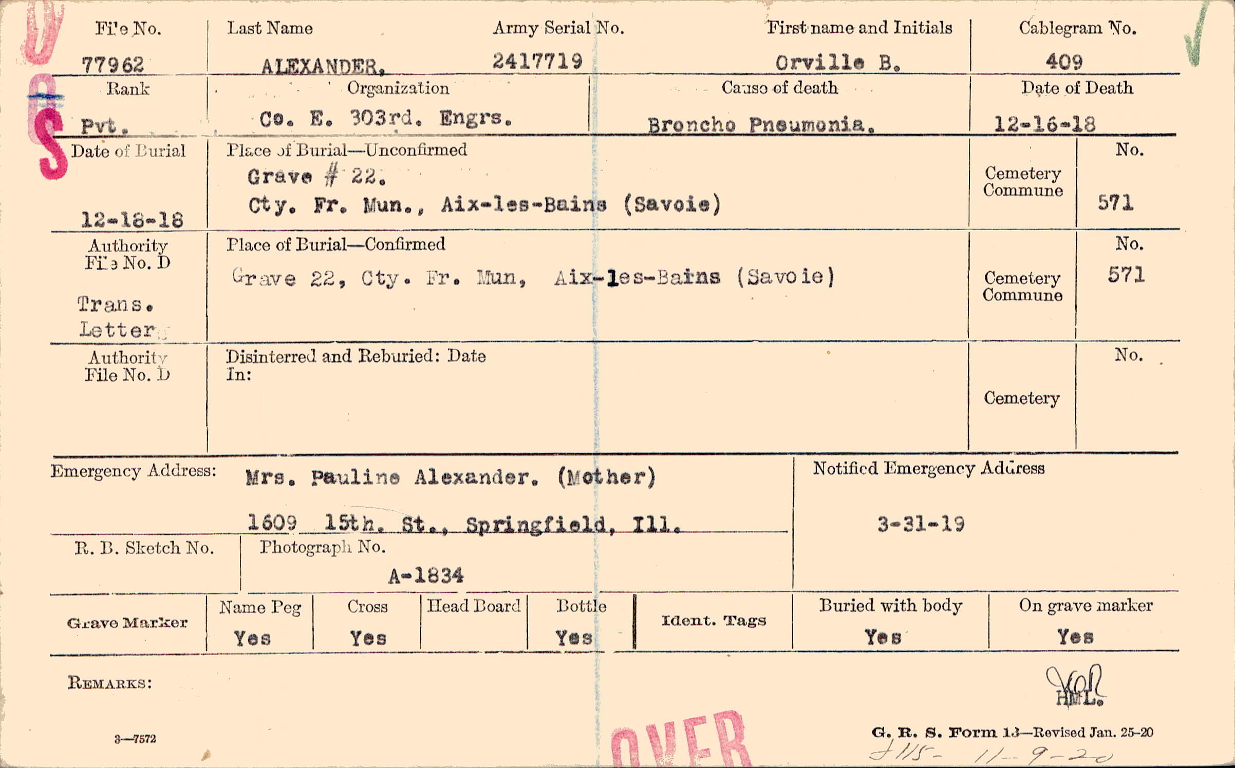 Mrs. Pauline Alexander. (Mother), 1609 15th. St., Springfield, Ill.