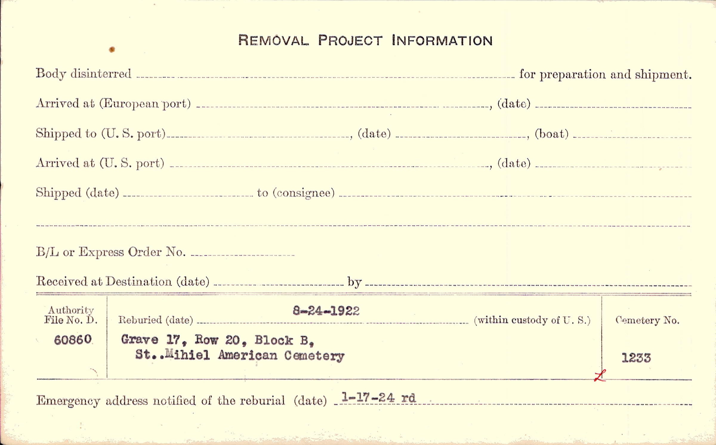 | Permanent Burial in Foreign Cemetery |