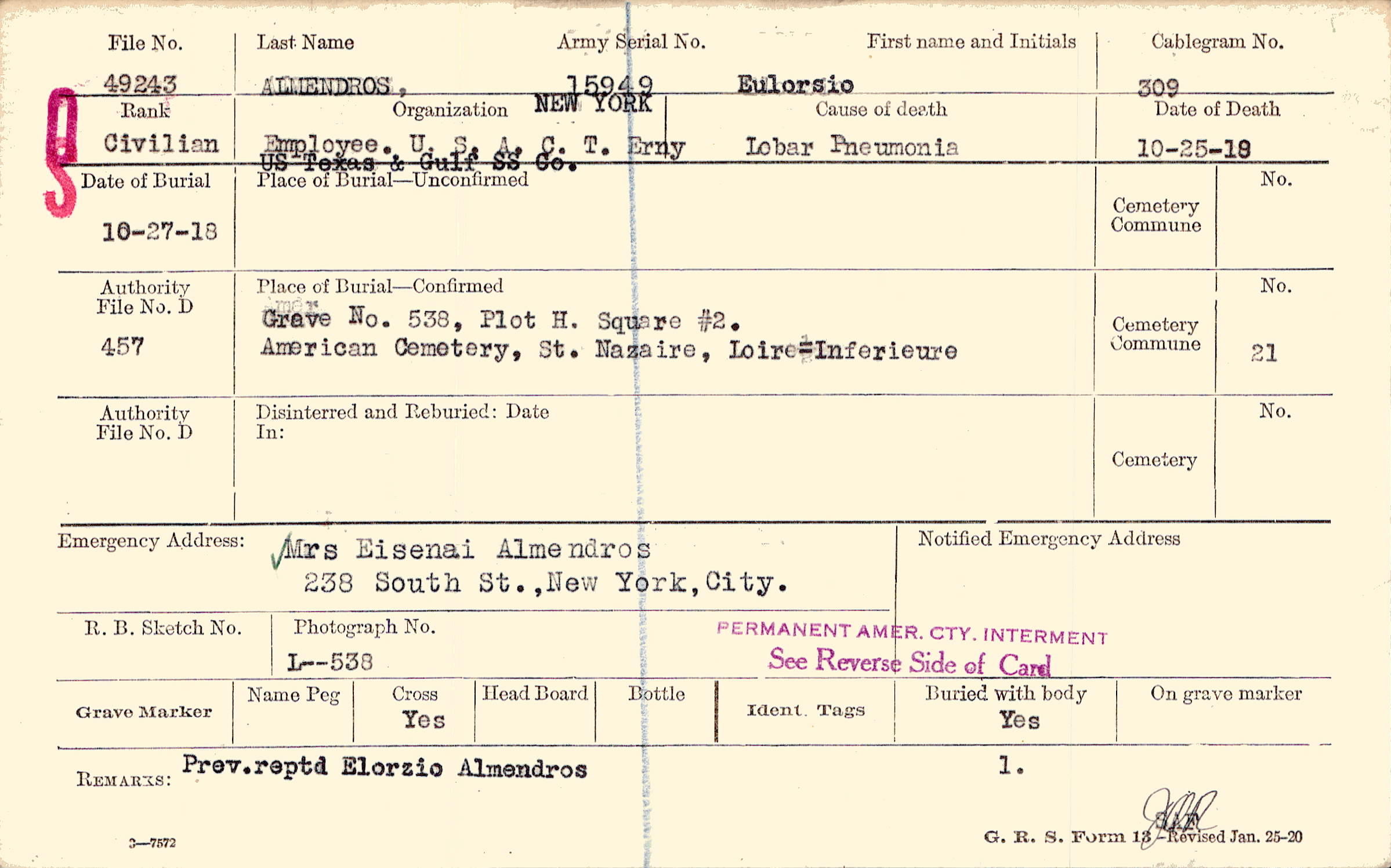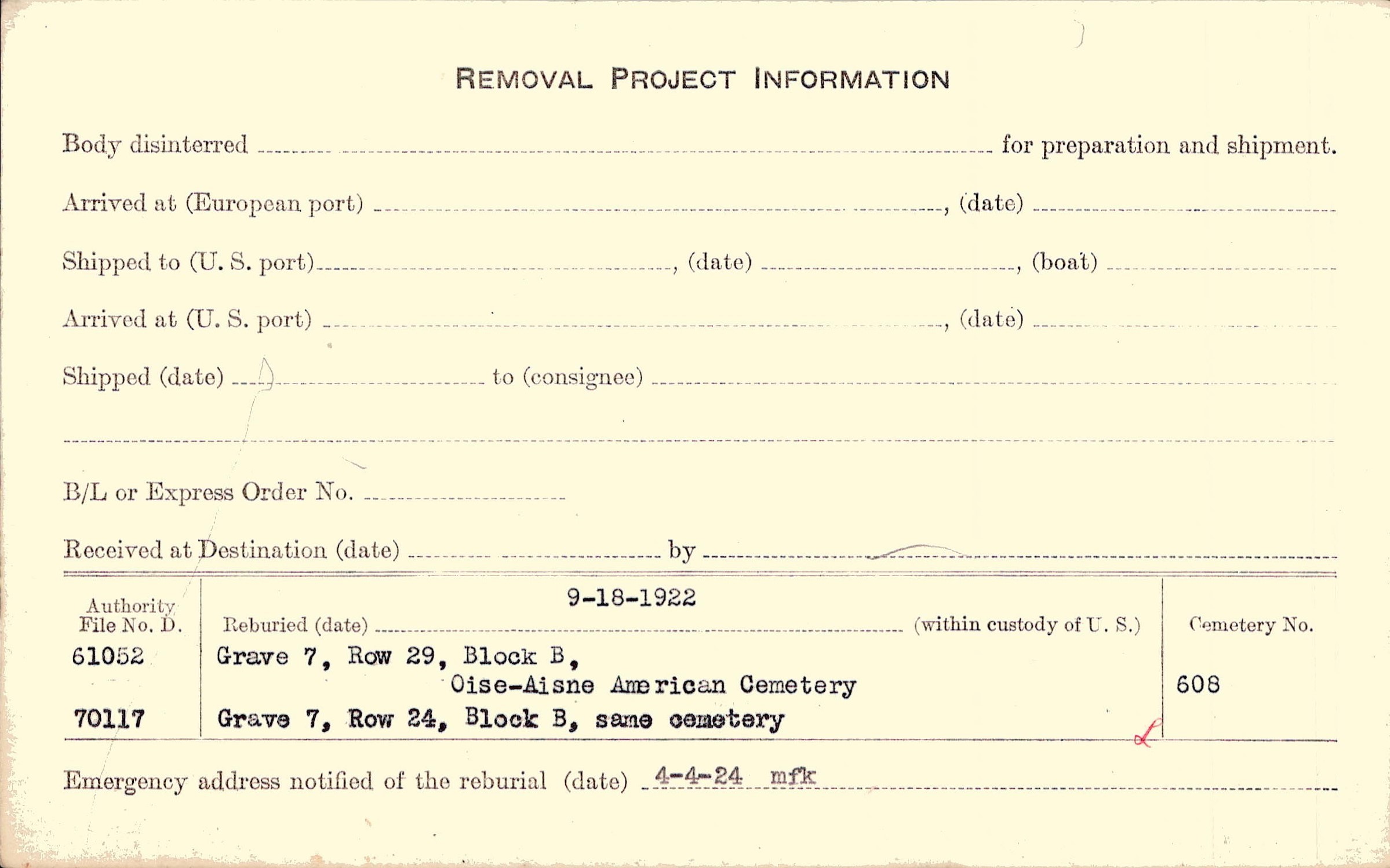 Prior Burial in Foreign Cemetery |