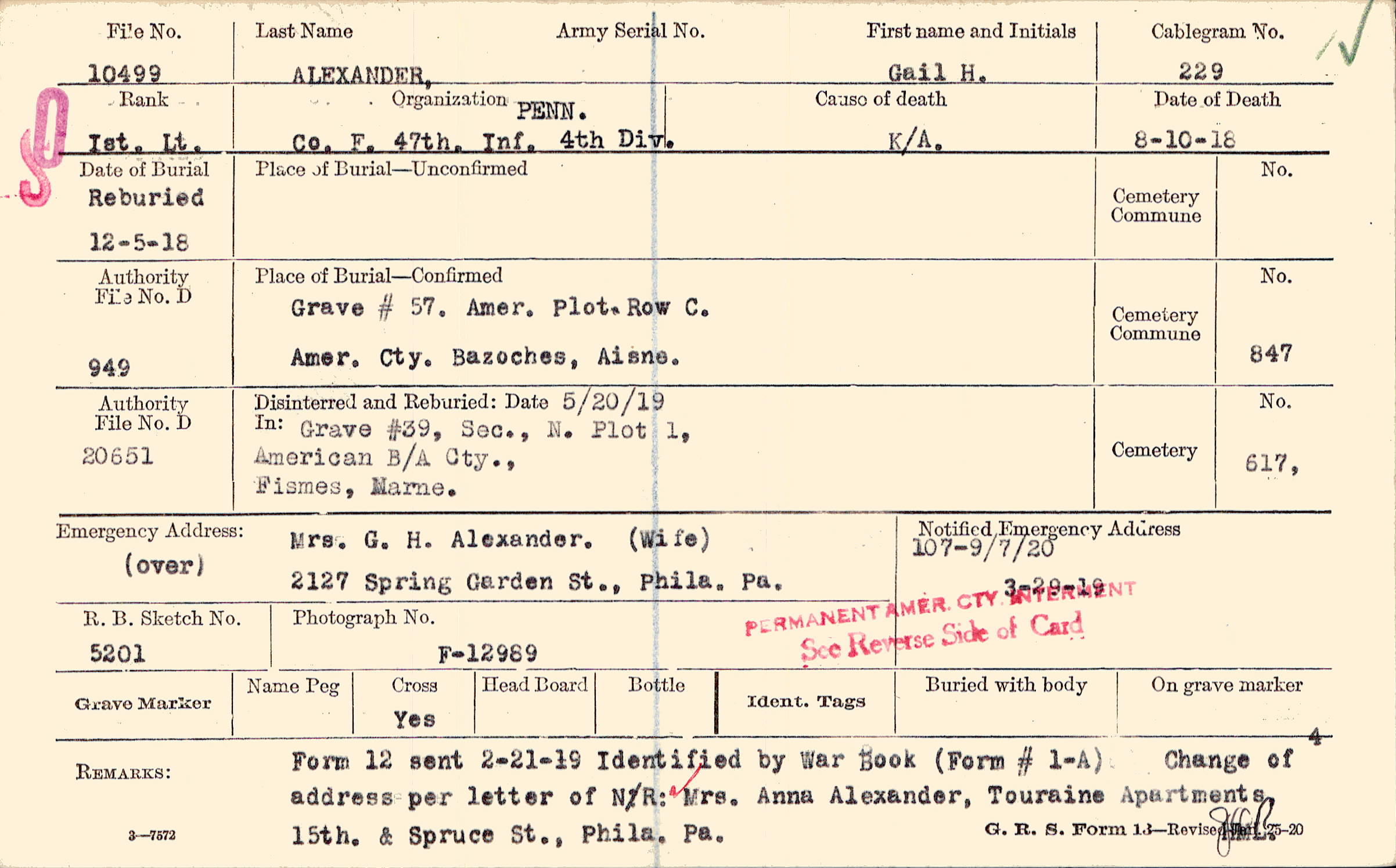 Mrs. G. H. Alexander. (Wife), 2127 Spring Garden St., Phila. Pa., (over)