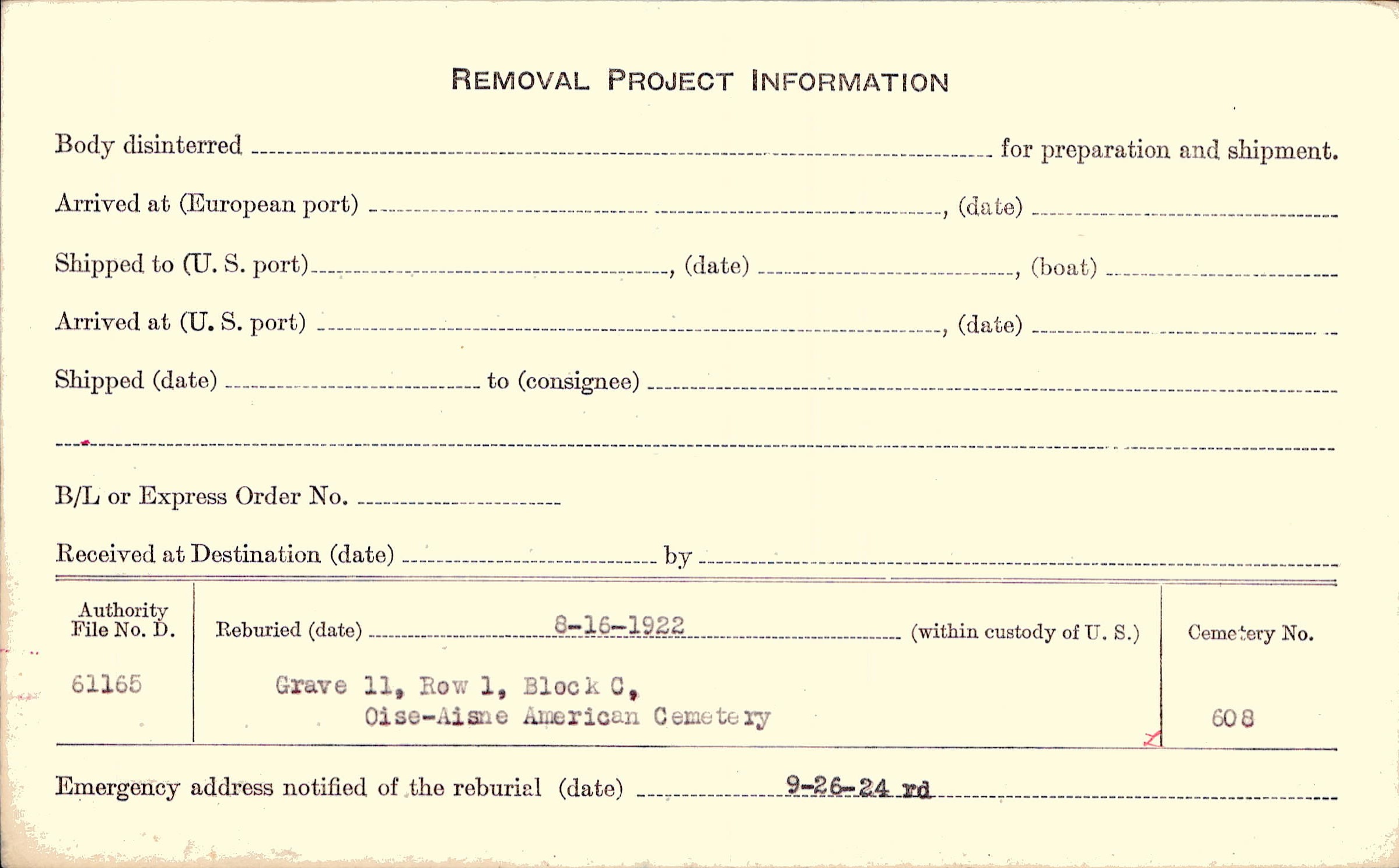 | Reburied (date): |