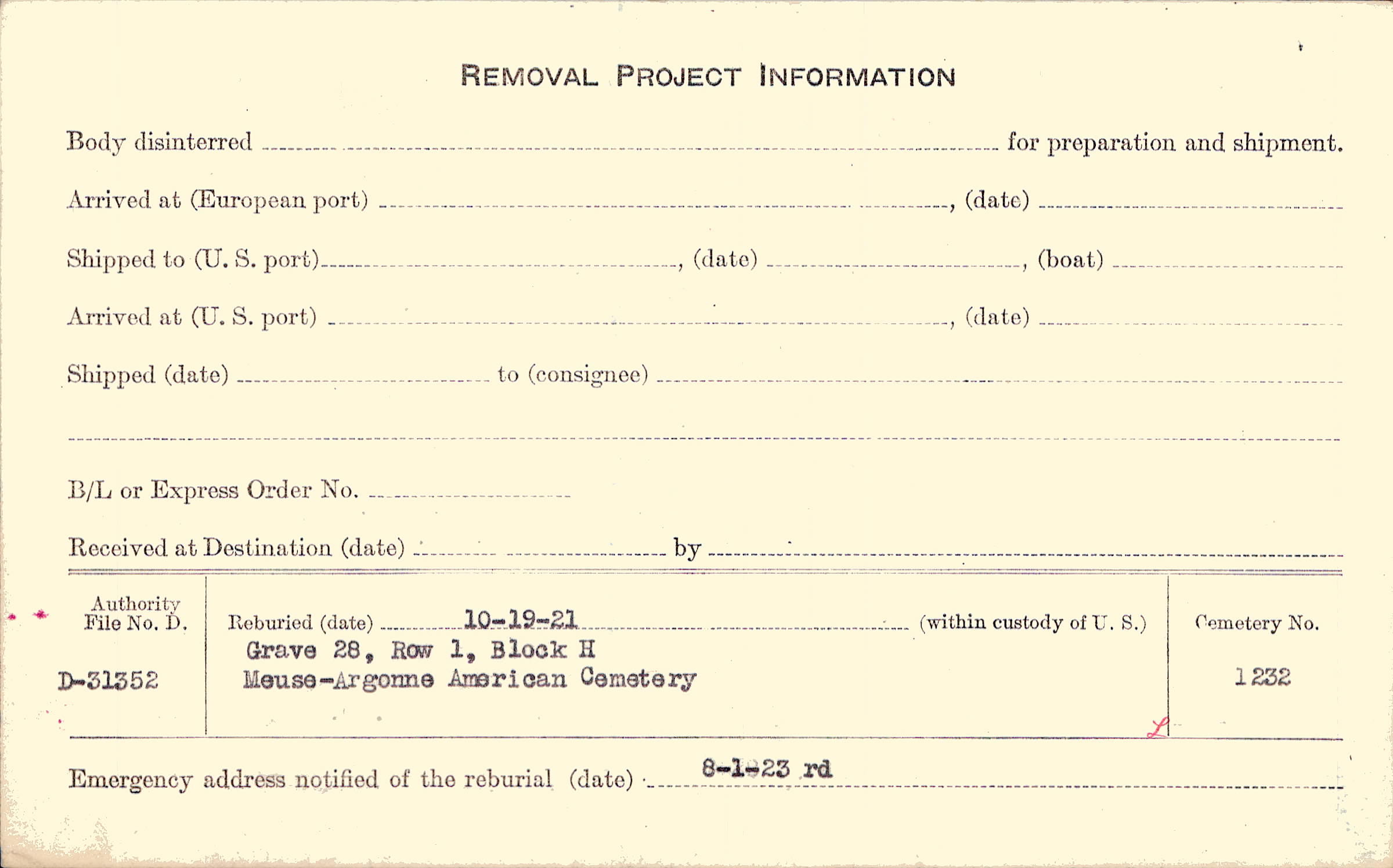 | Permanent Burial in Foreign Cemetery |