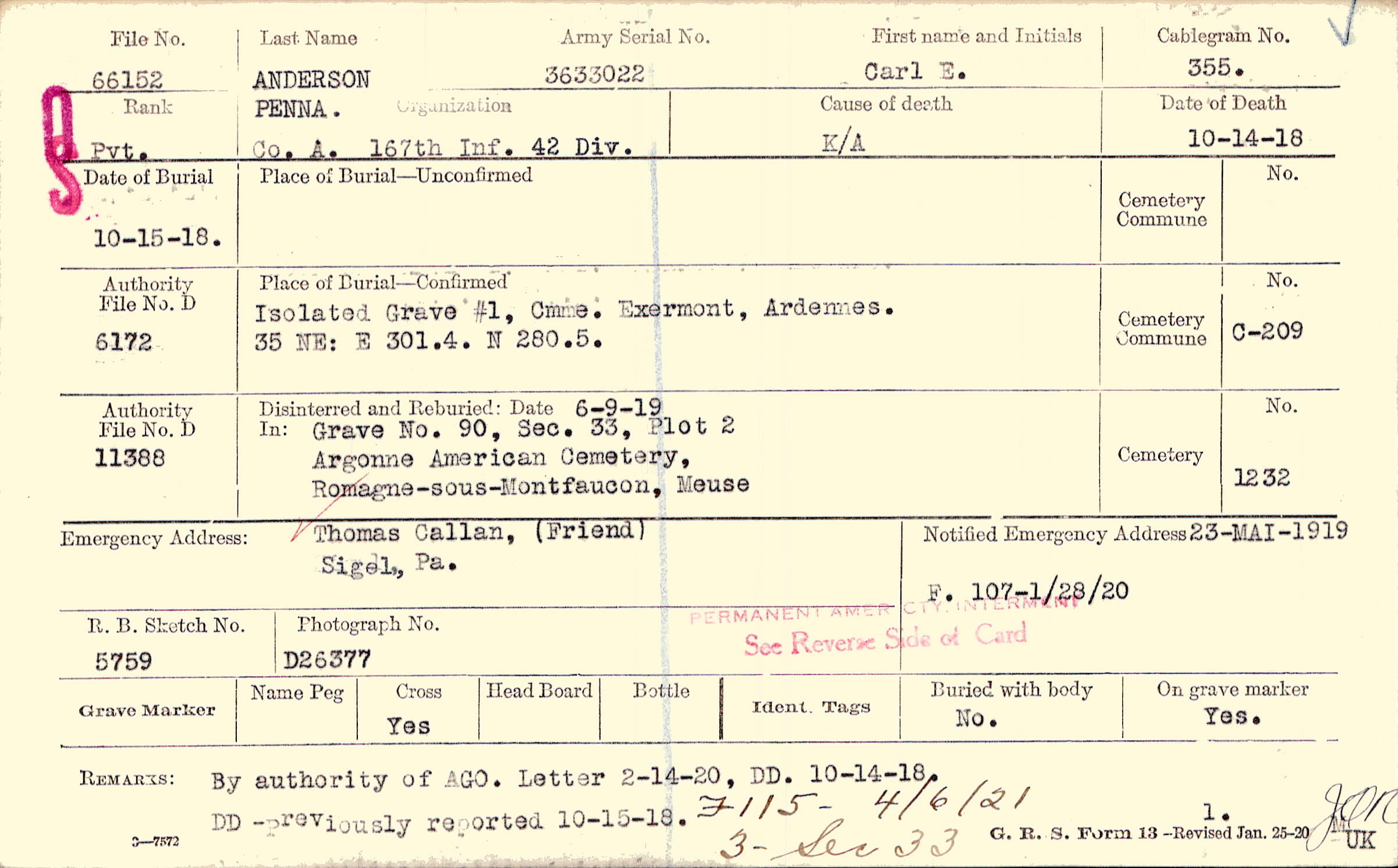 Isolated, Grave #1, Cmme. Exermont, Ardennes, 35 NE