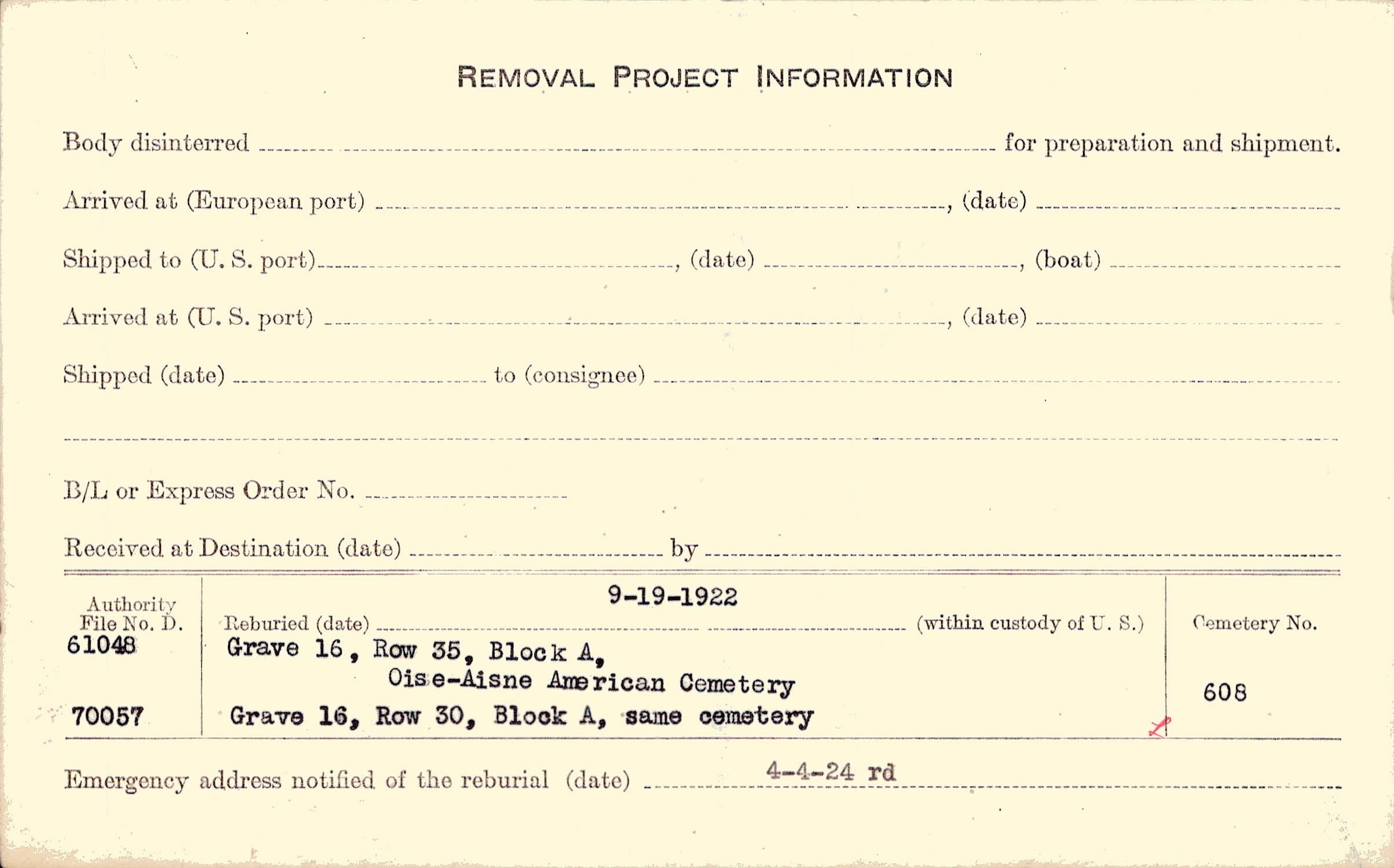 Grave #140, Plot E, Square 1, Amer. Cty., St. Nazaire., Loire Inferieure.