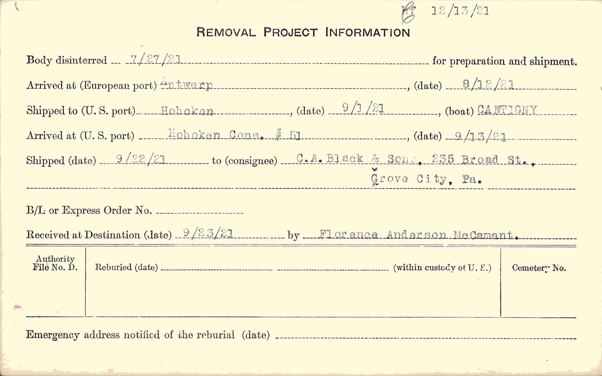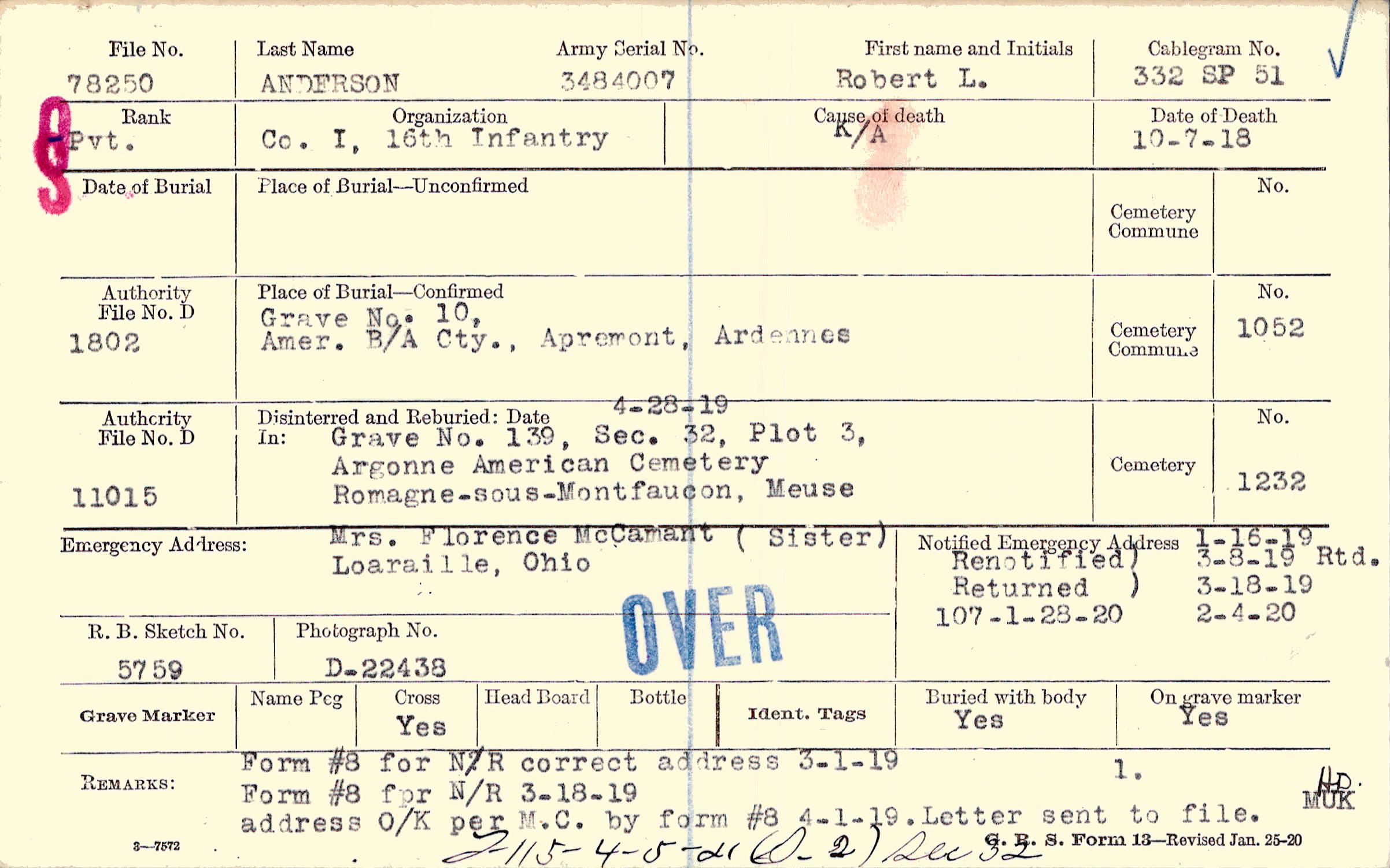 1/16/1919, Renotified) 3/8/1919 Rtd, Returned ) 3/18/1919, 107/1/192820 2/4/1920