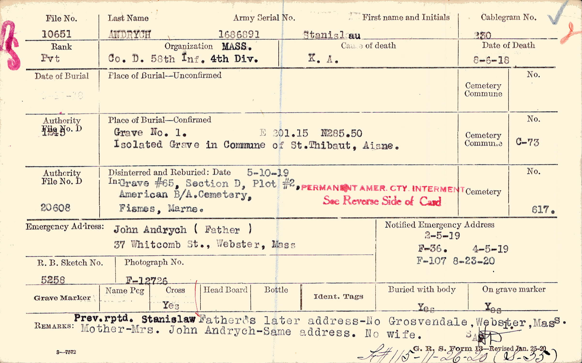 John Andrych (Father), 37 Whitcomb St., Webster, Mass.