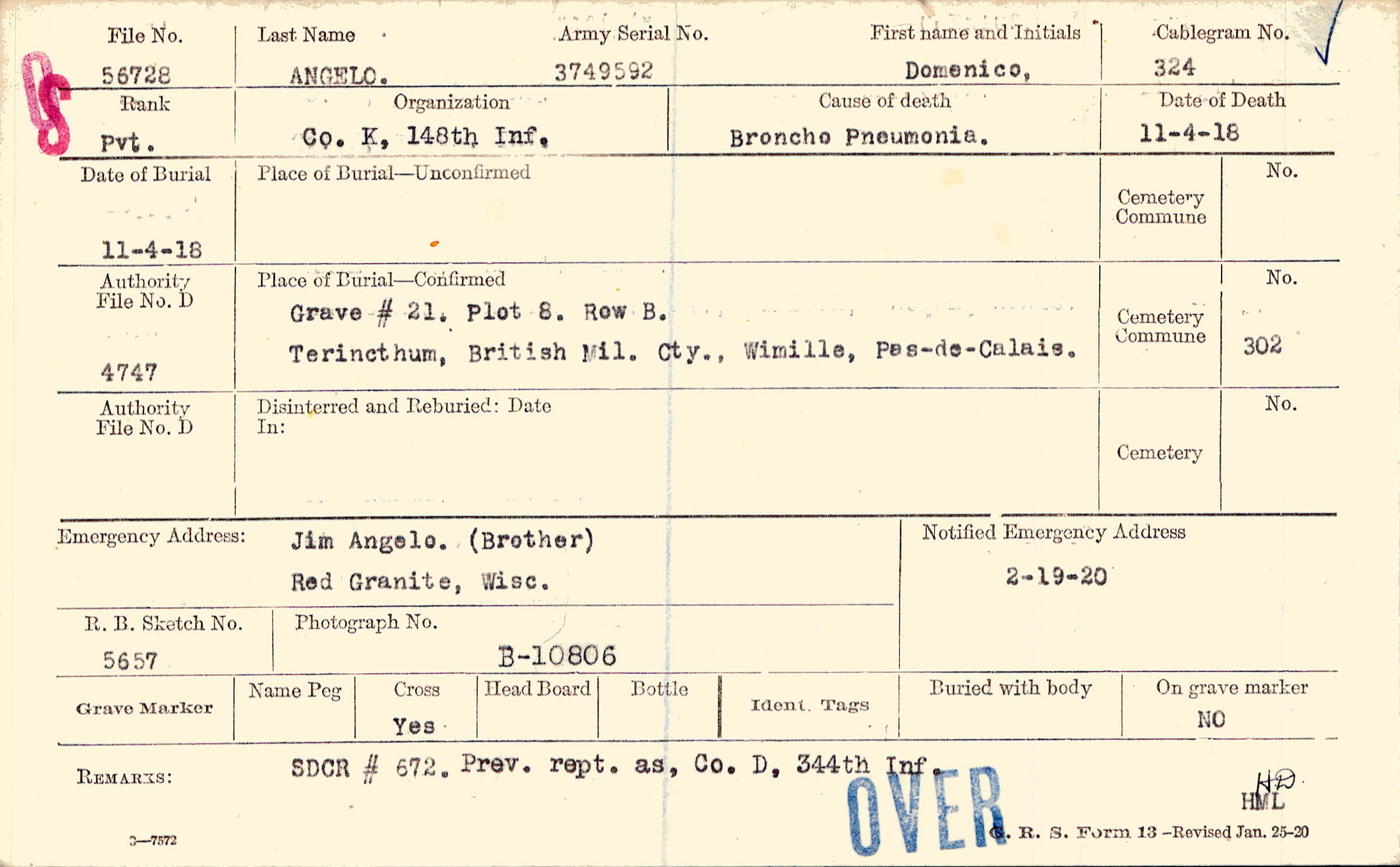 Prev. rept. as Co. D. 344th Inf., SDCR # 672.
