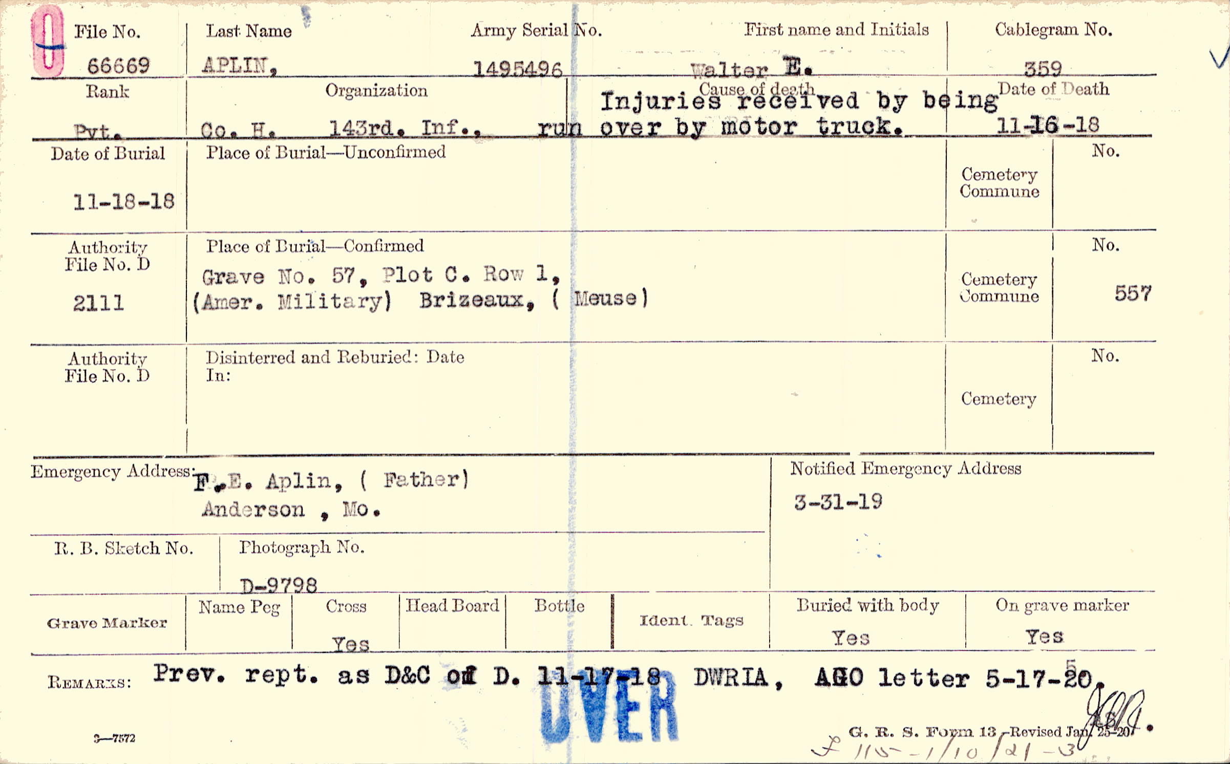 | Reburied (date): |