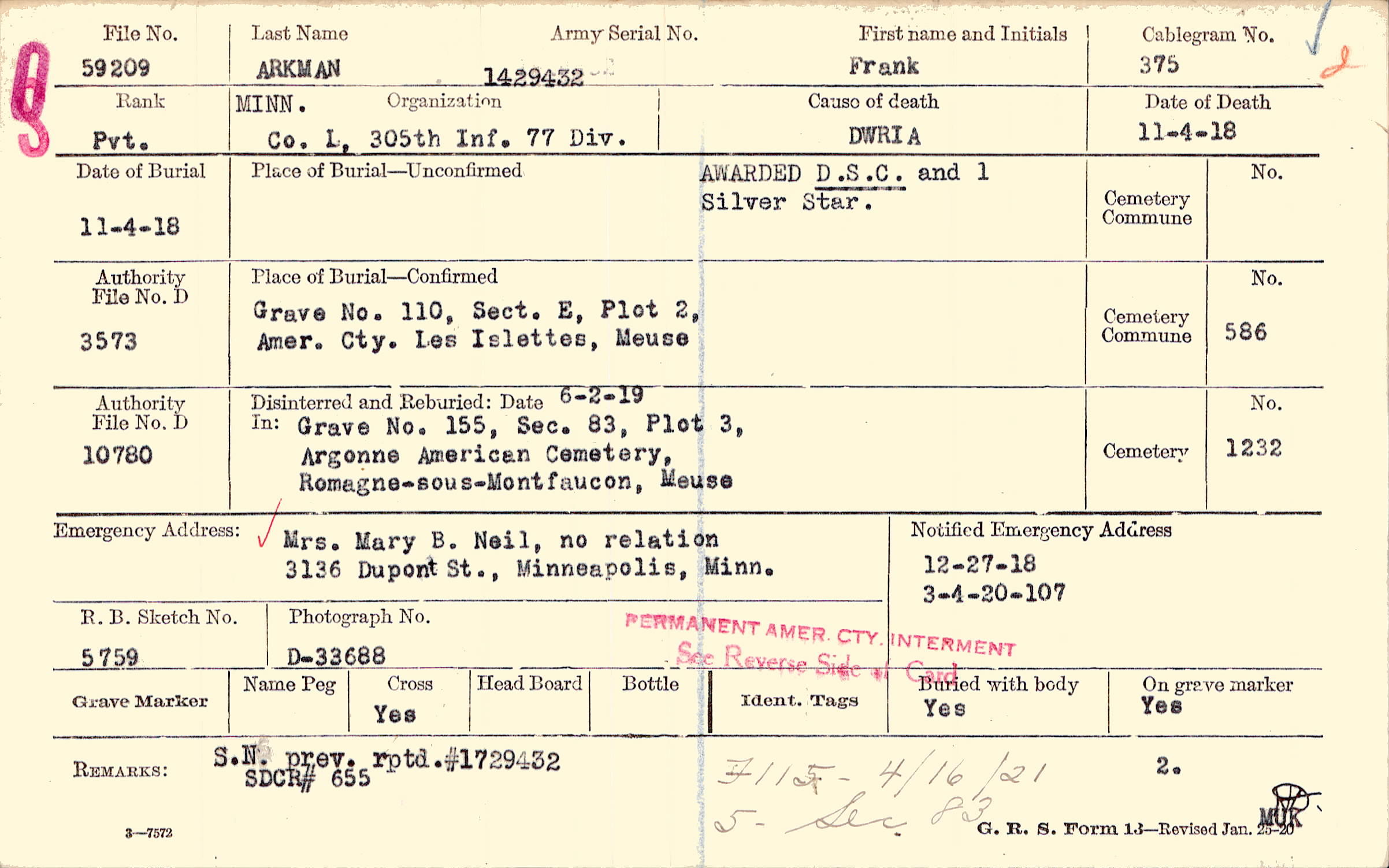 Grave 110, Sect. E, Plot 2, Amer. Cty., Les Islettes, Meuse