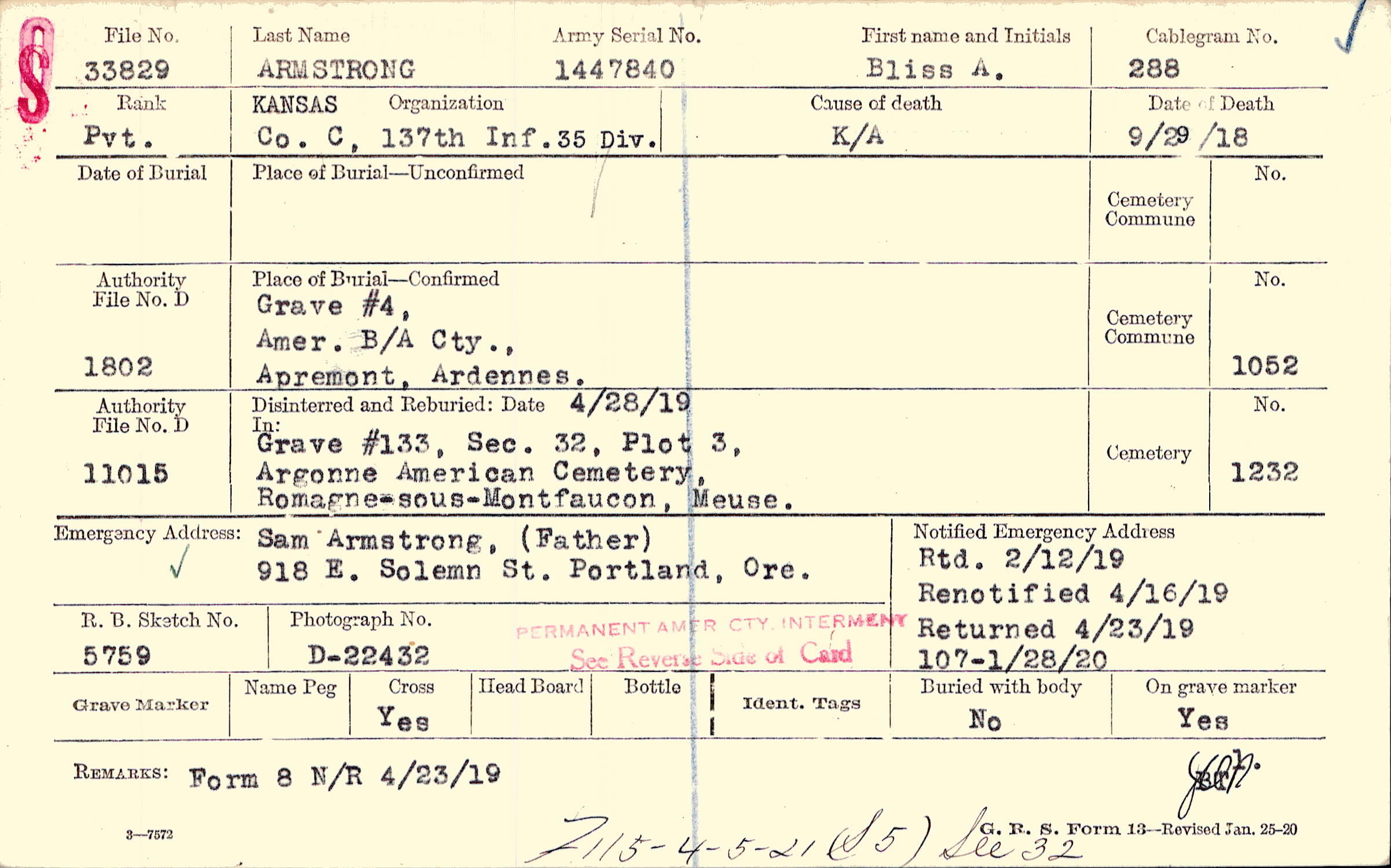 Sam Armstrong, (Father), 918 E. Solemn St. Portland, Ore.