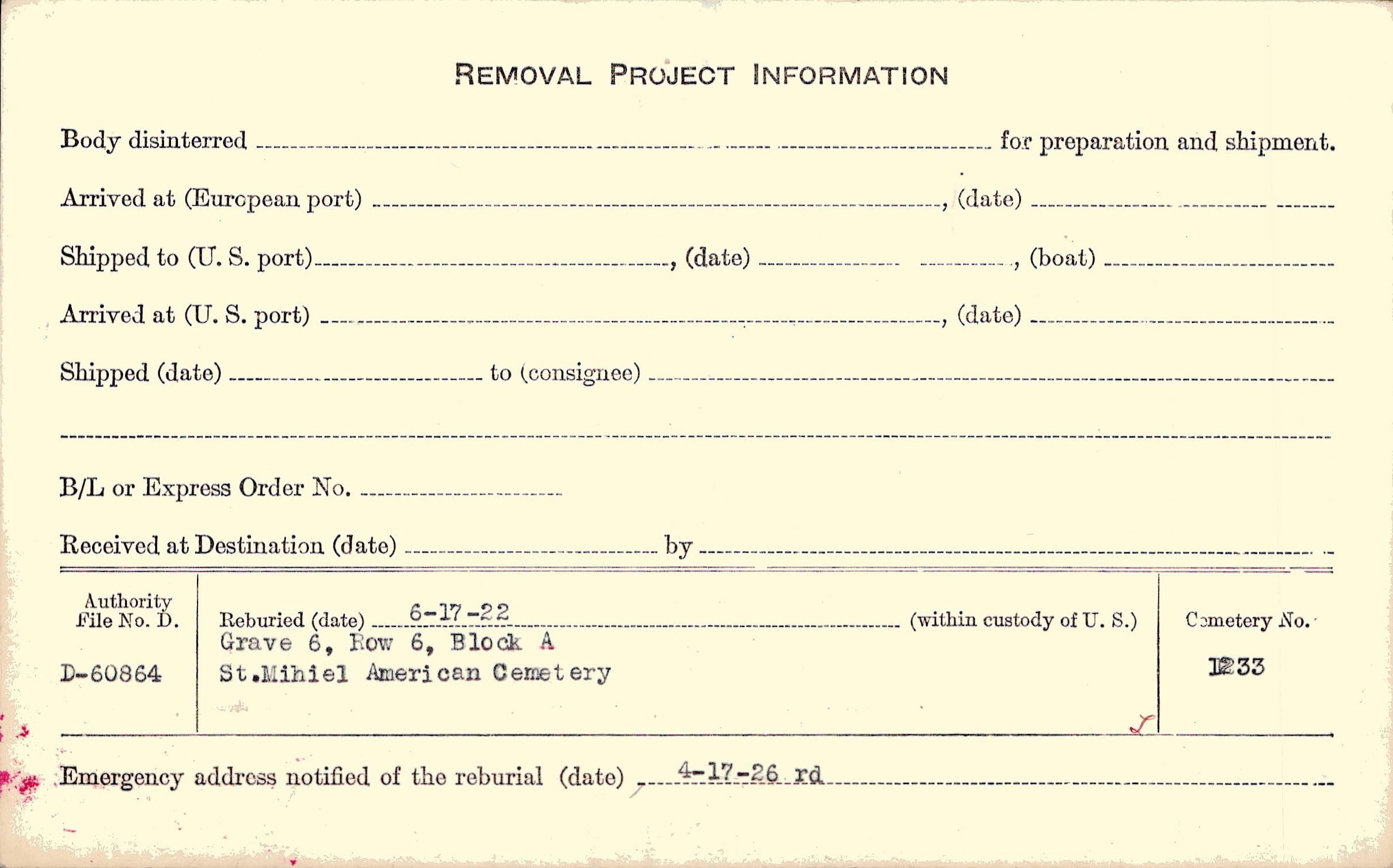 Grave 209-B,Amer. Cty. Mars-sur-Allier, Nievre.