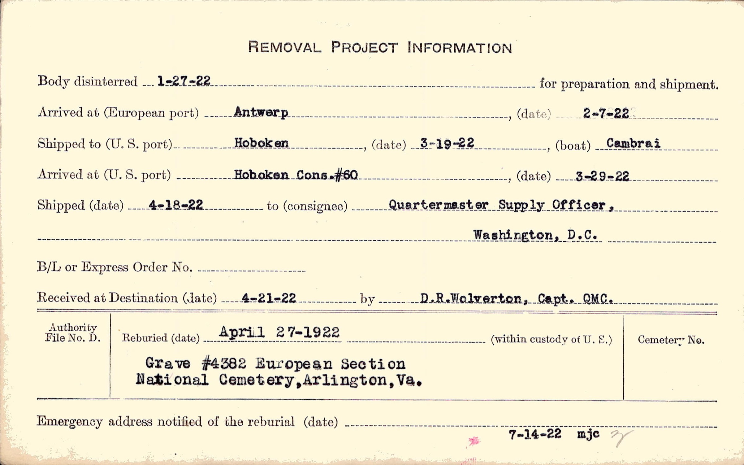 Grave 85, Amer. Plot, Row D., Amer. Cty. Bazoches, Aisne.