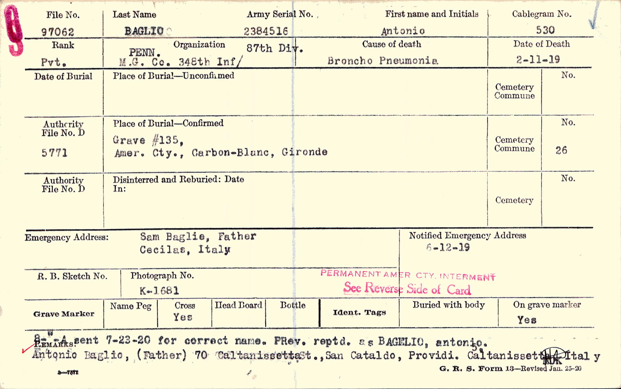 Grave #135, Amer. Cty., Carbon-Blanc, Gironde