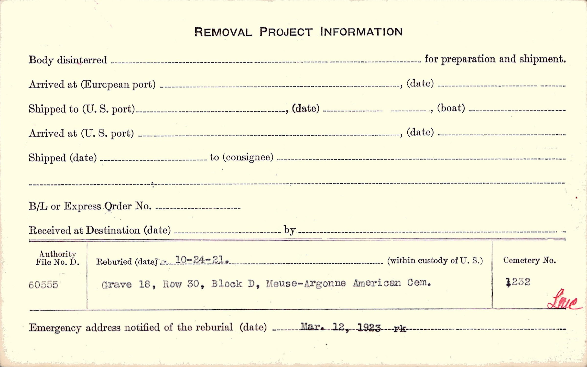 | Permanent Burial in Foreign Cemetery |