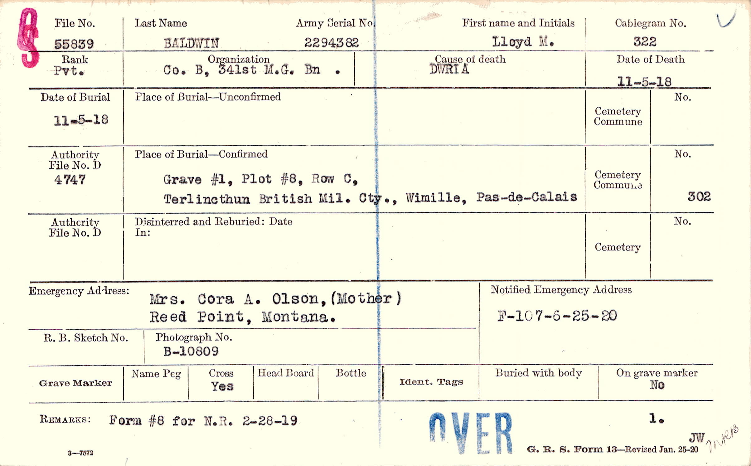 Mrs. Cora A. Olsen, ( Mother), Reed Point, Montana.