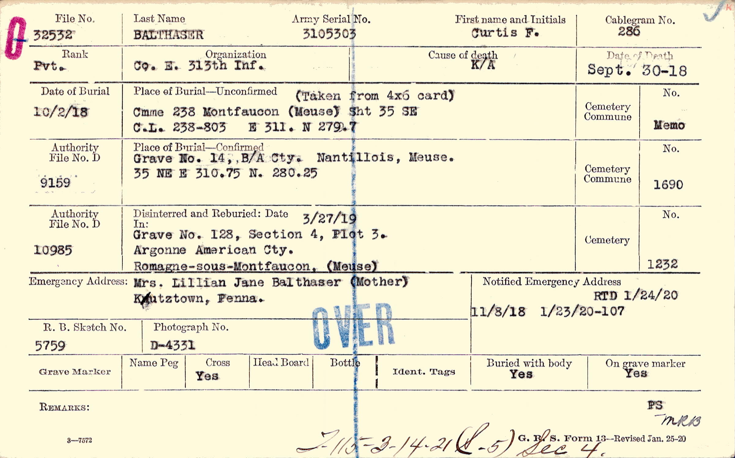 Grave 14, B/A/ Cty., Nantillois, Meuse, 35 NE