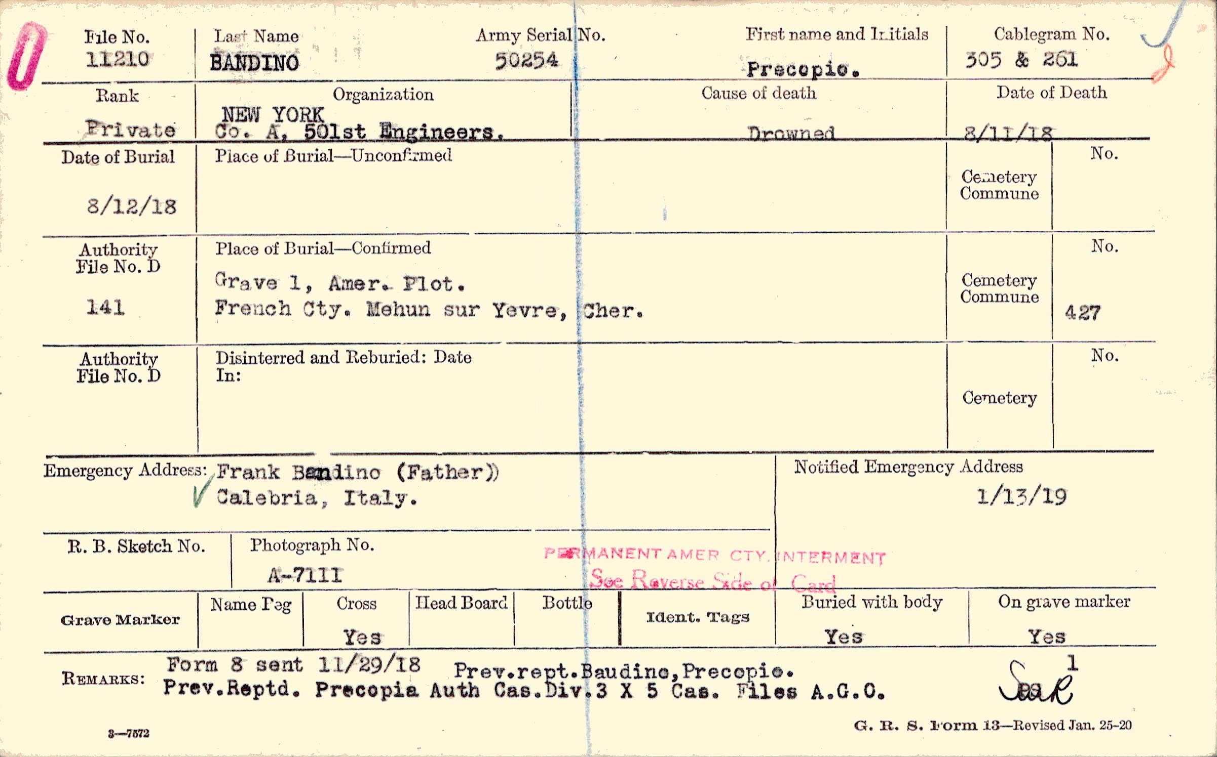 Grave 1, Amer. Plot., French Cty., Mehun sur Yevre, Cher.