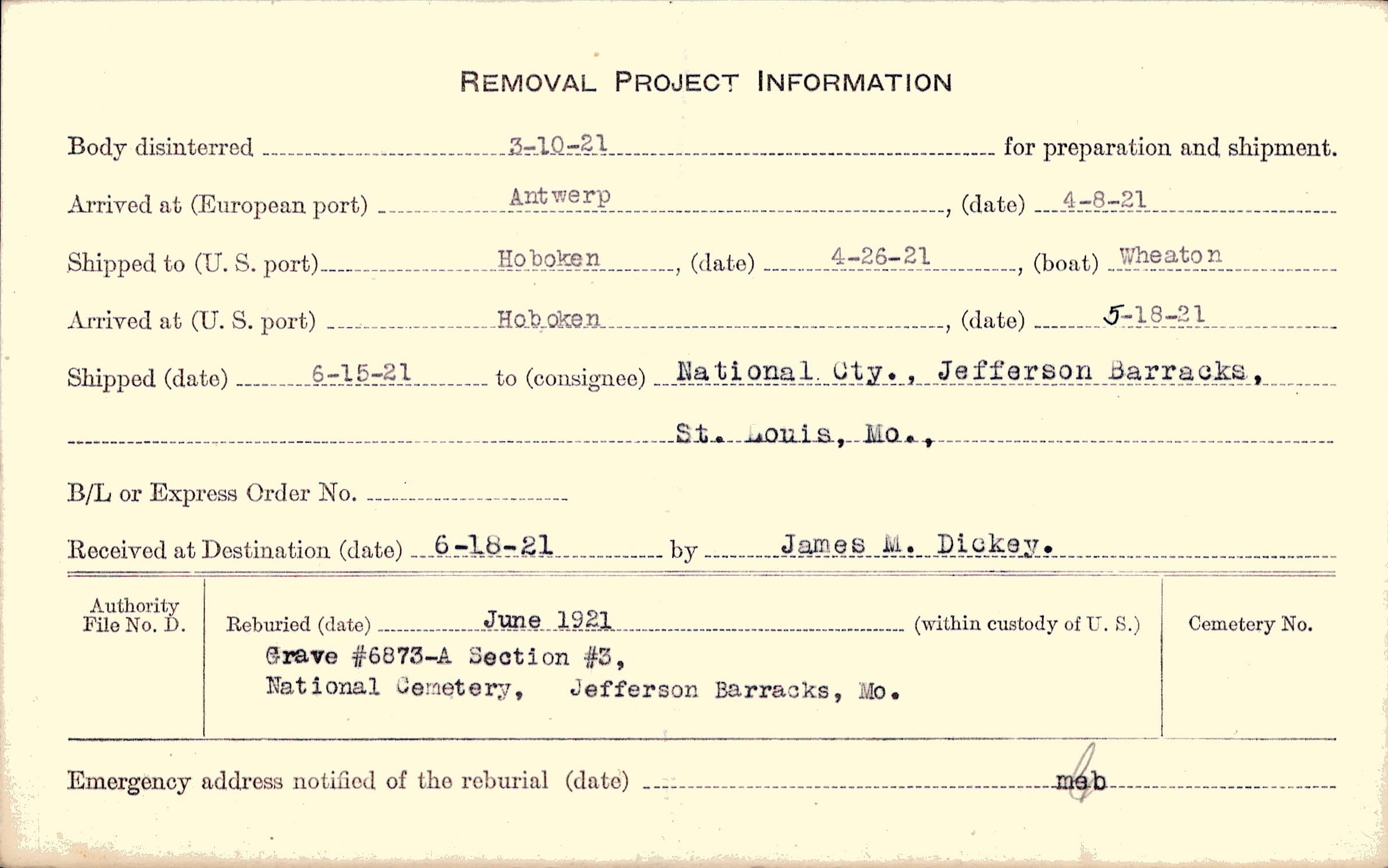 to National Cty., Jefferson Barracks, St. Louis, Mo.,