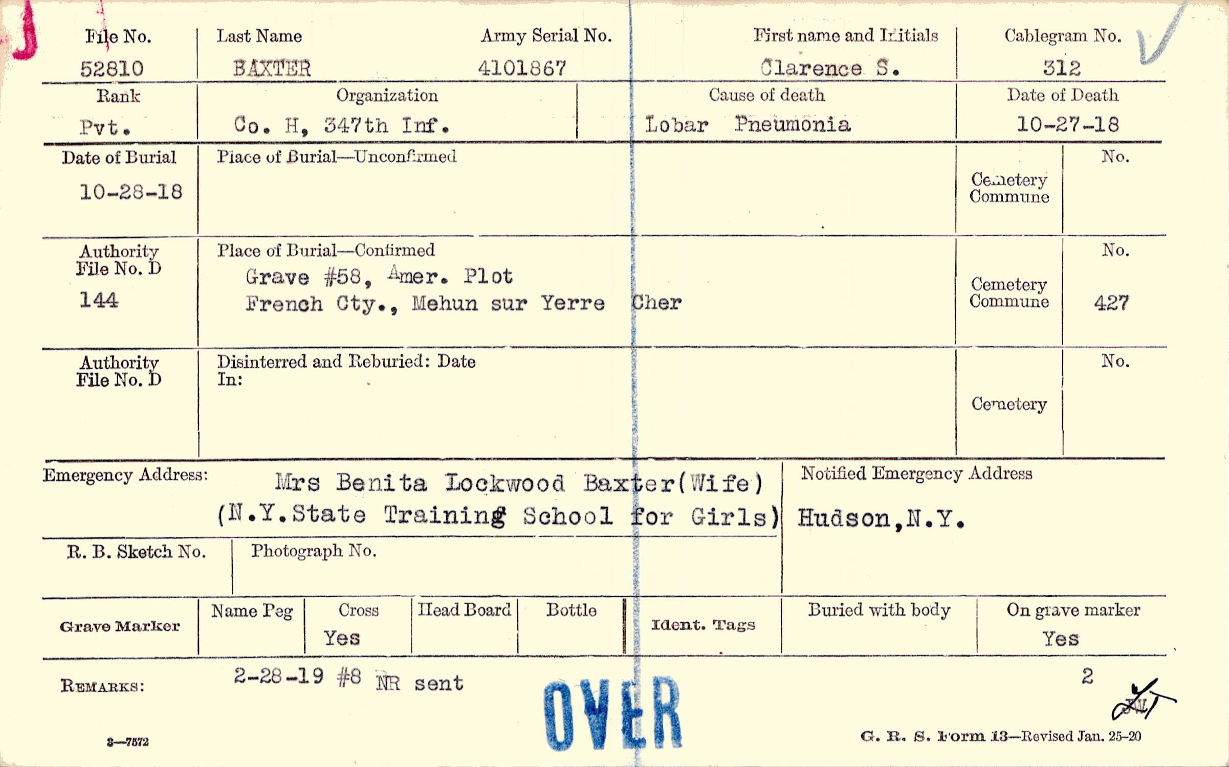 Mrs Benita Lockwood Baxter (Wife), (N.Y. State Training School for Girls) Hudson, N.Y.