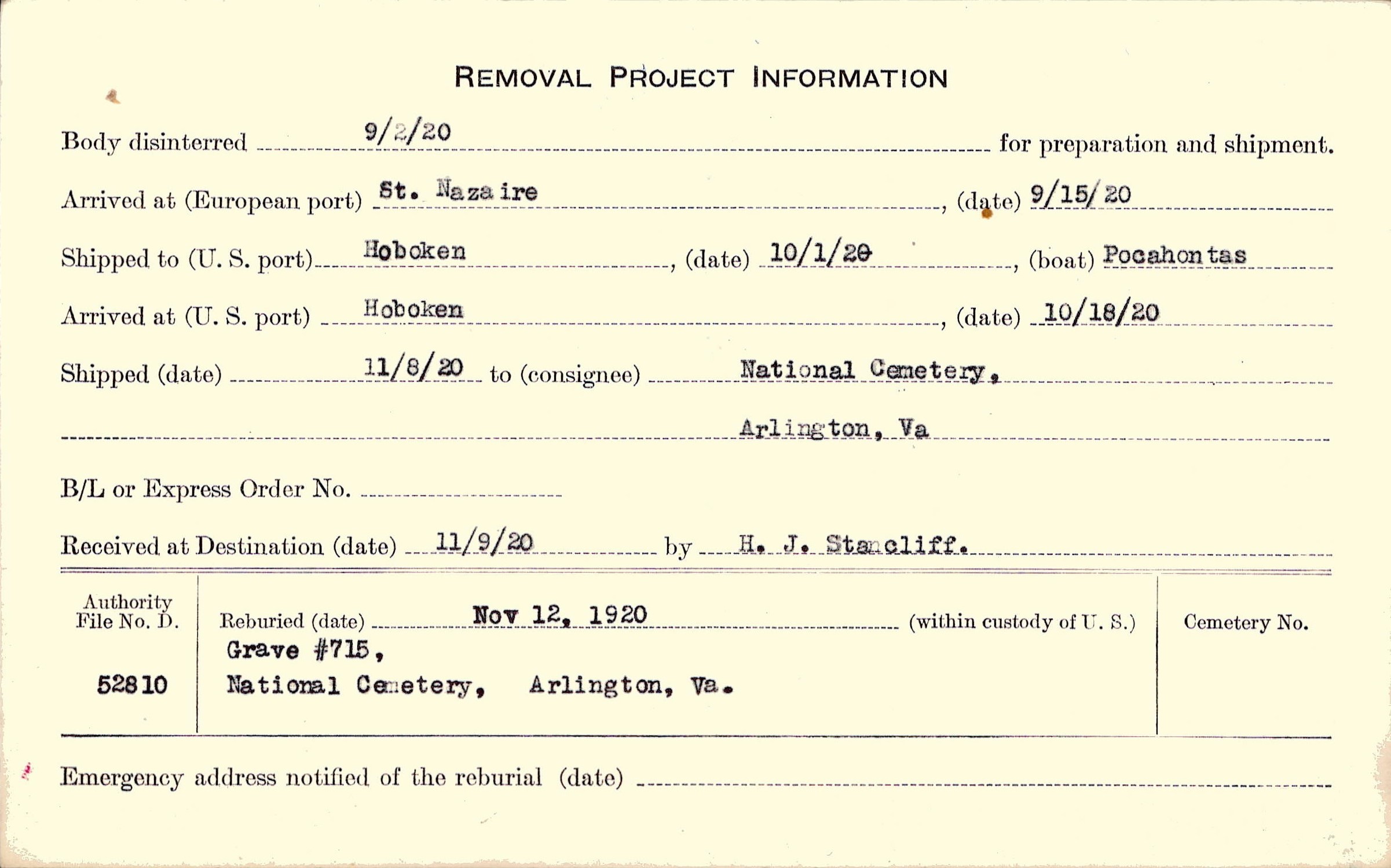 Grave #58, Amer. Plot, French Cty., Mehun sur Yerre, Cher
