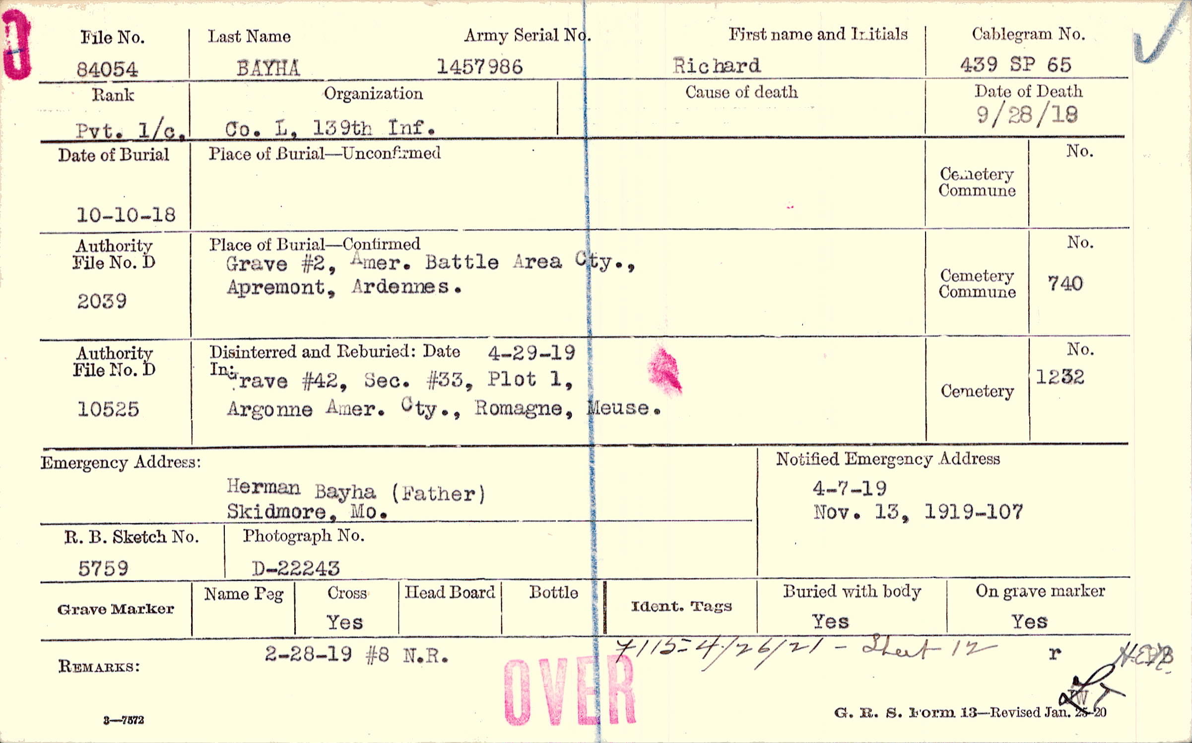 4/7/1919, Nov 13, 1919 Form 107: