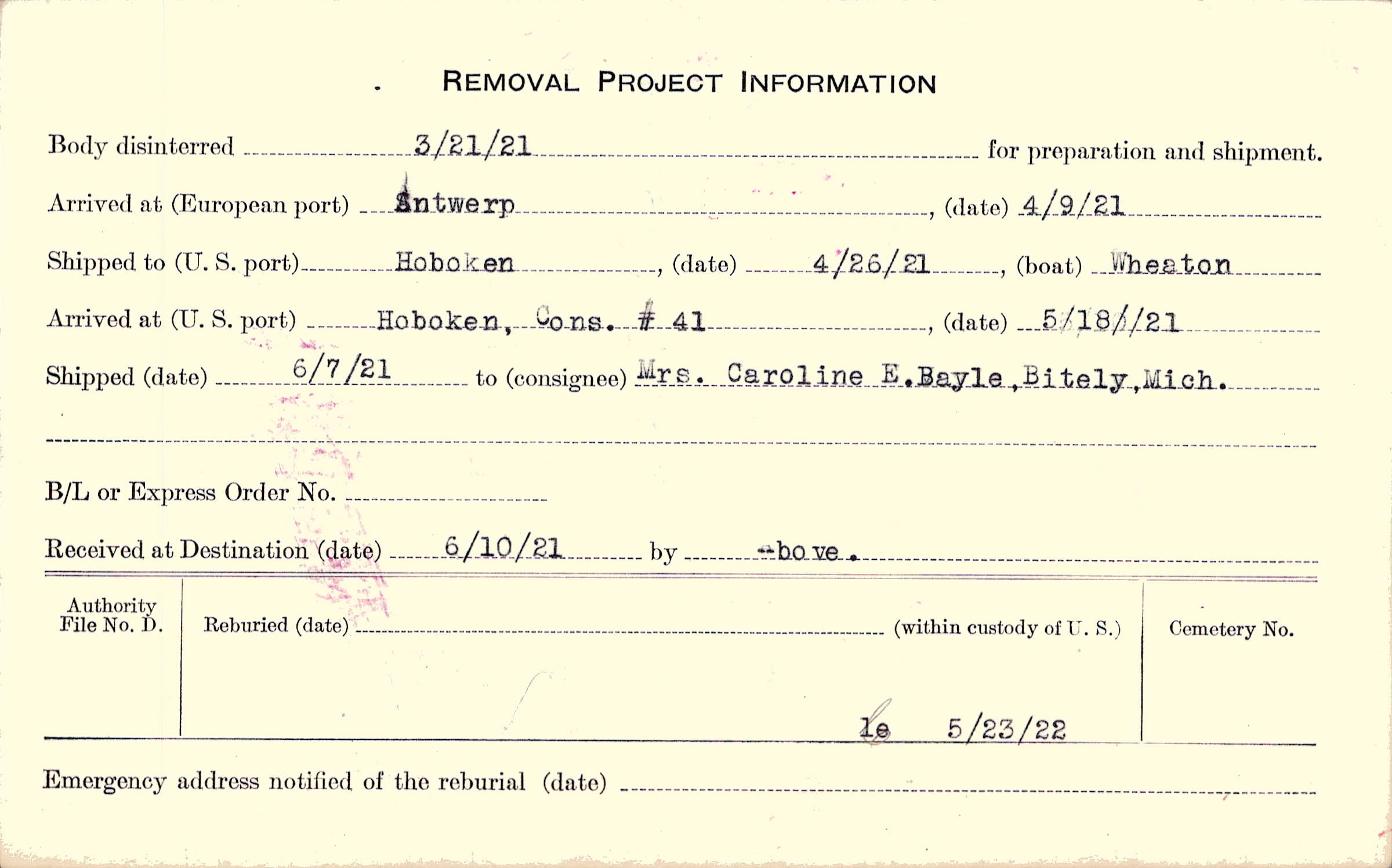 to Mrs. Caroline E. Bayle, Bitely, Mich.