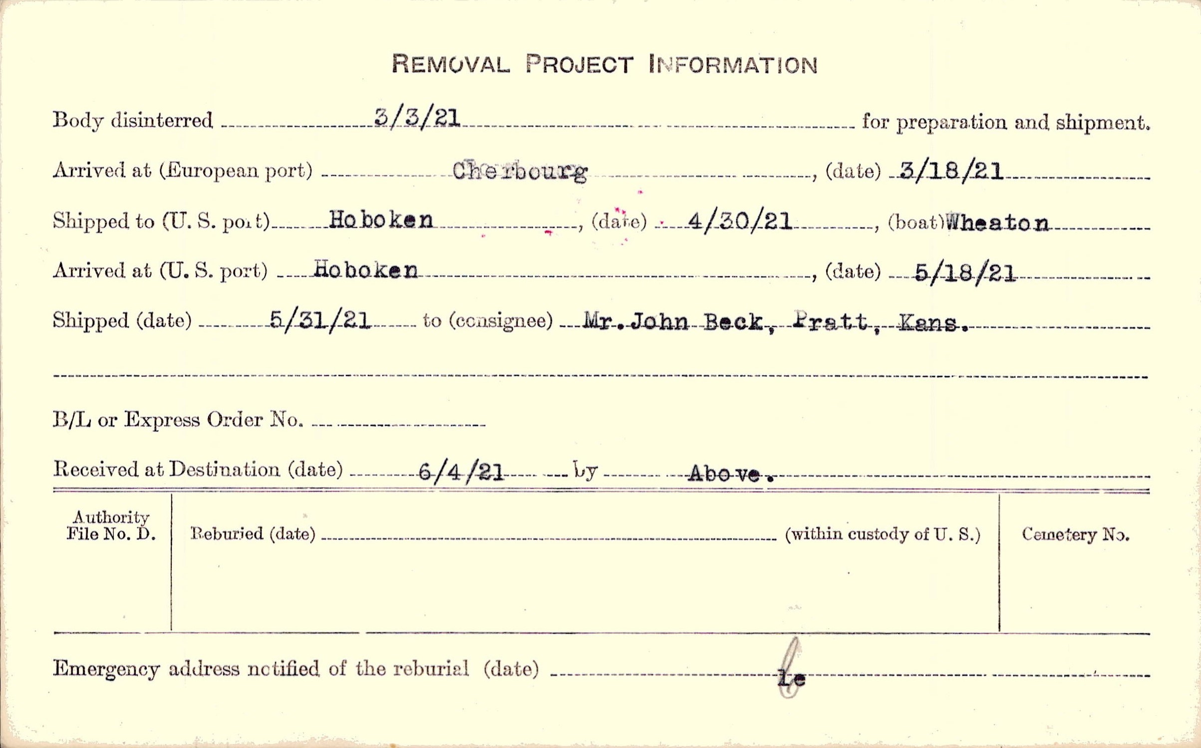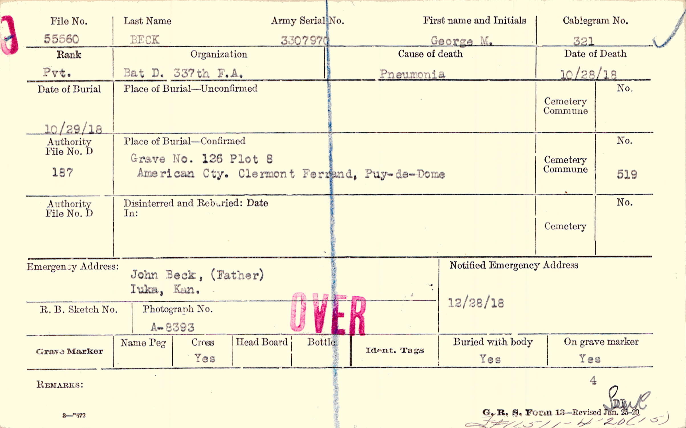 Grave 126, Plot 8,American Cty., Clermont Ferrand, Puy-de-Dome.