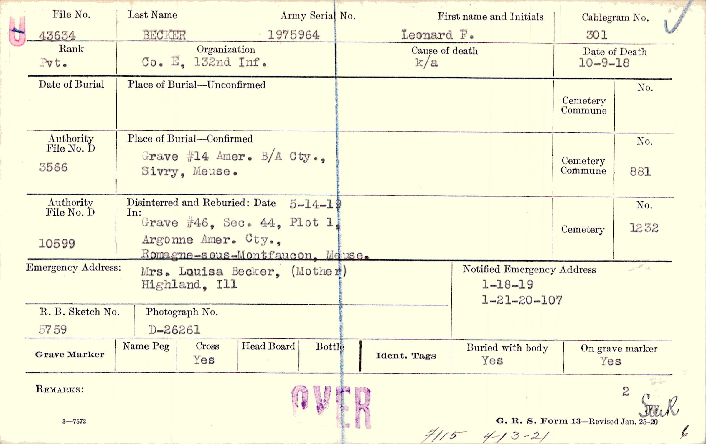 Grave #14, Amer. B/A Cty., Sivry, Meuse.