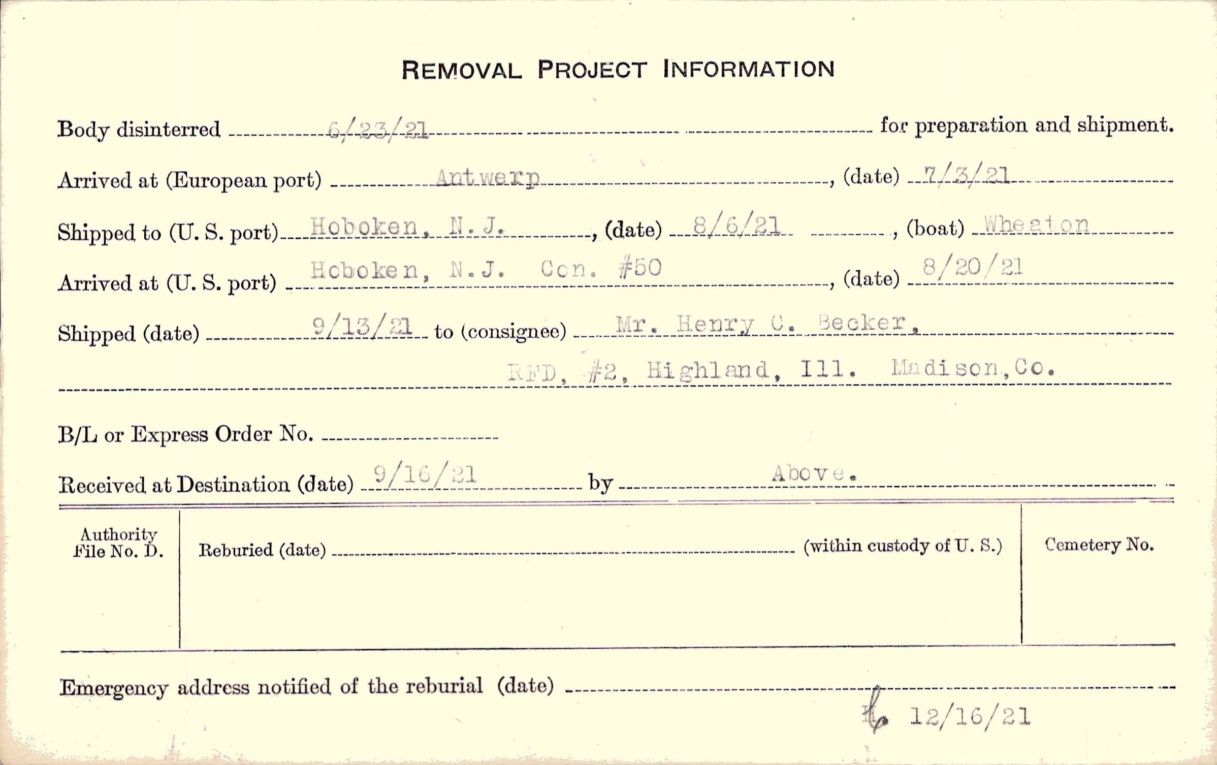 to Mr. Henry C. Becker, RFD, #2, Highland, Ill. Madison, Co.