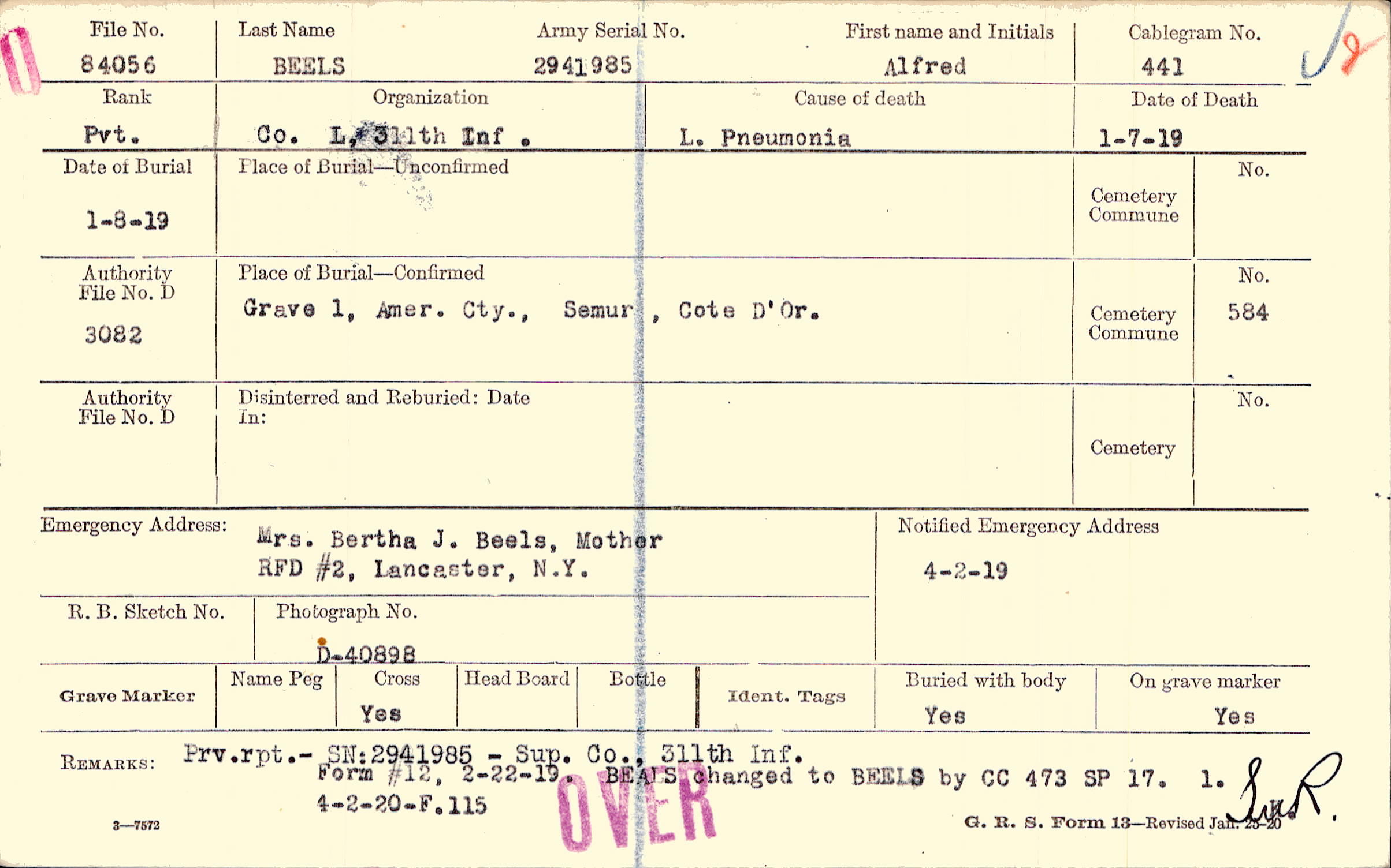 Mrs. Bertha J. Beels, Mother, RFD #2, Lancaster, N. Y.