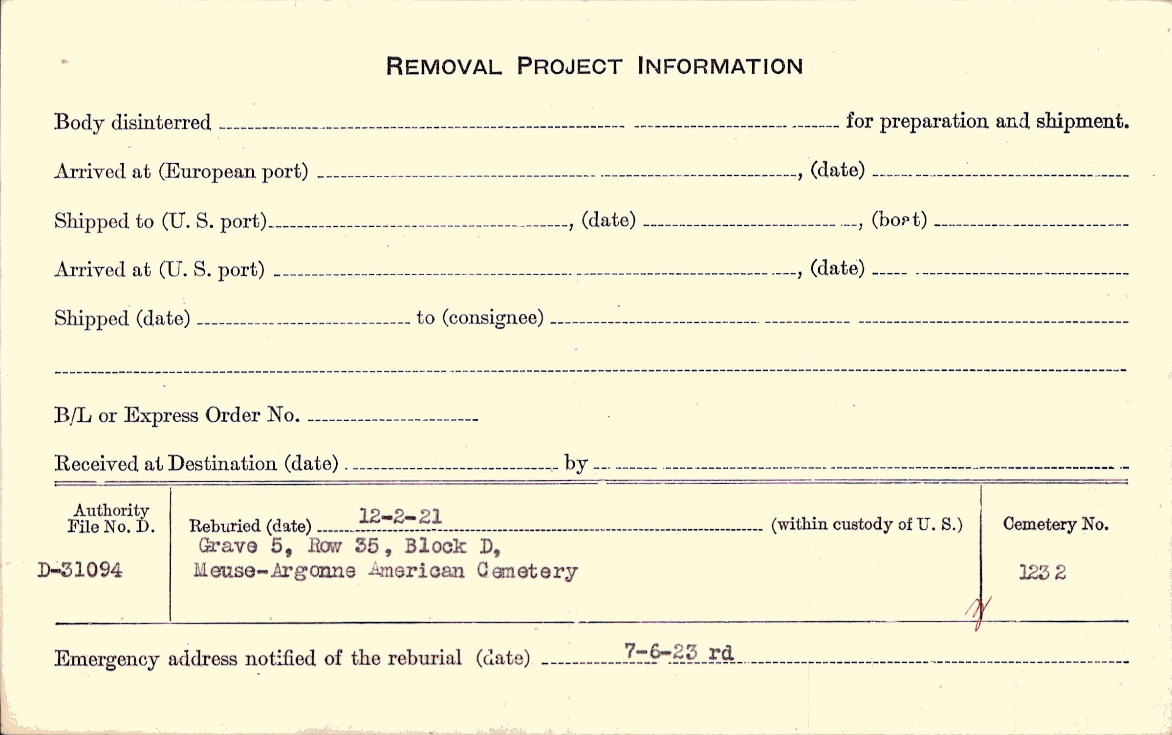 Grave 33, Section 33, Plot 1, Argonne American Cemetery, Romagne-sous-Montfaucon, Meuse