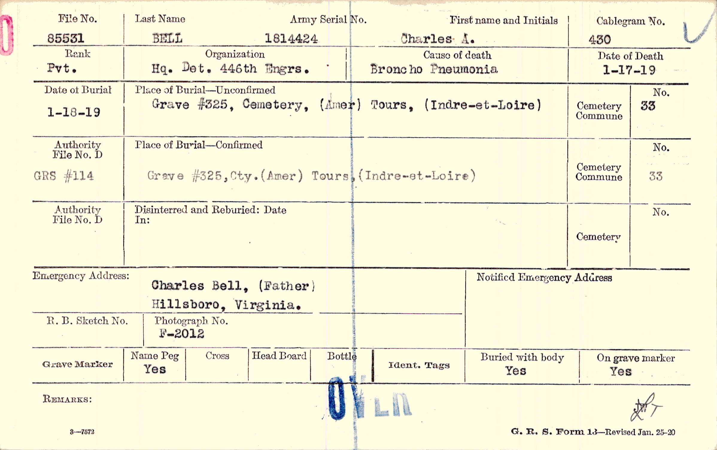 Grave #325, Cty. (Amer), Tours, Indre-et-Loire