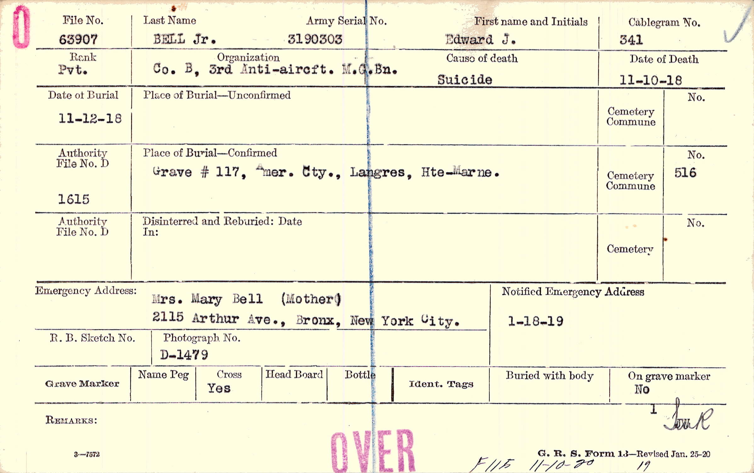 Grave ,#117, Amer. Cty., Langres, Hte-Marne.