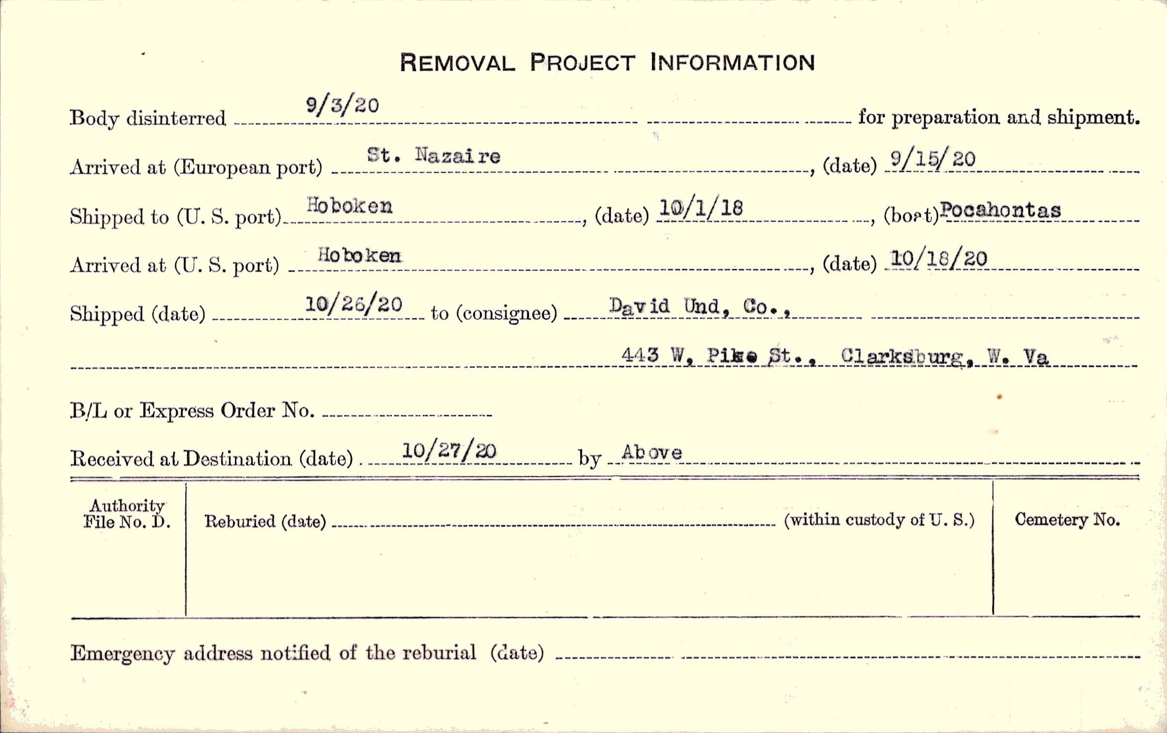 to David Und, Co., 443 W, Pike St., Clarksburg, W. Va.
