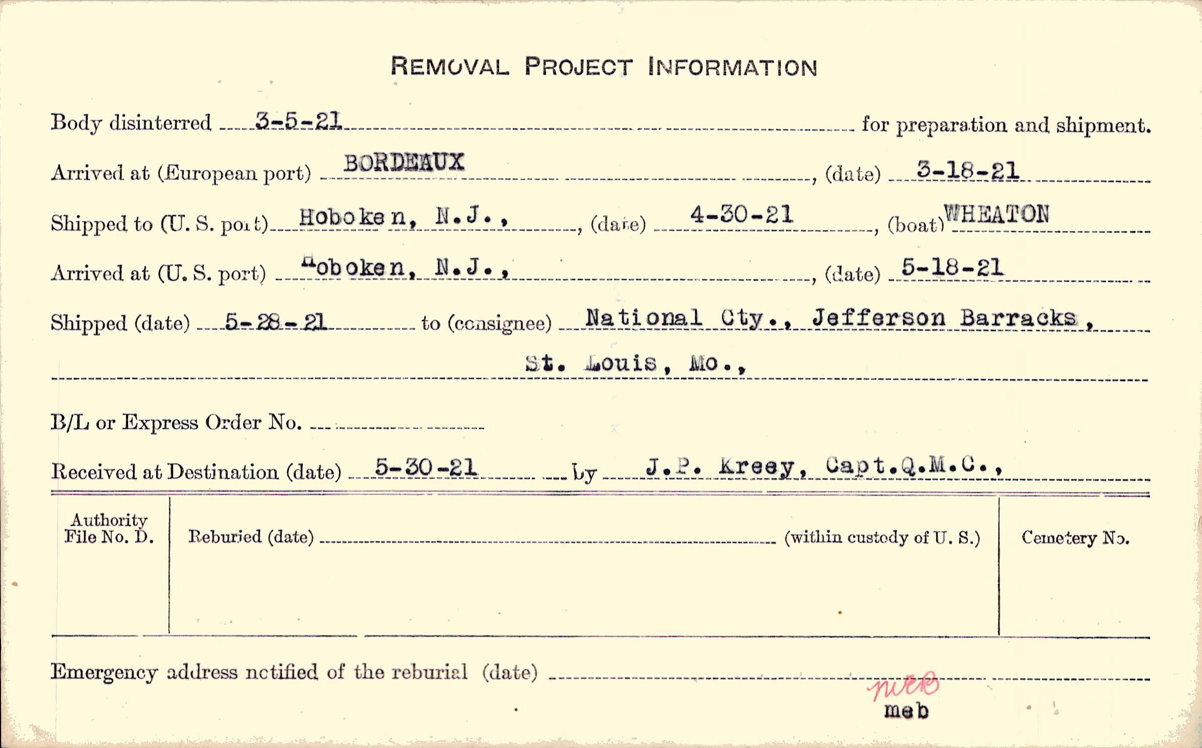 to National Cty., Jefferson Barracks, St. Louis, MO.,