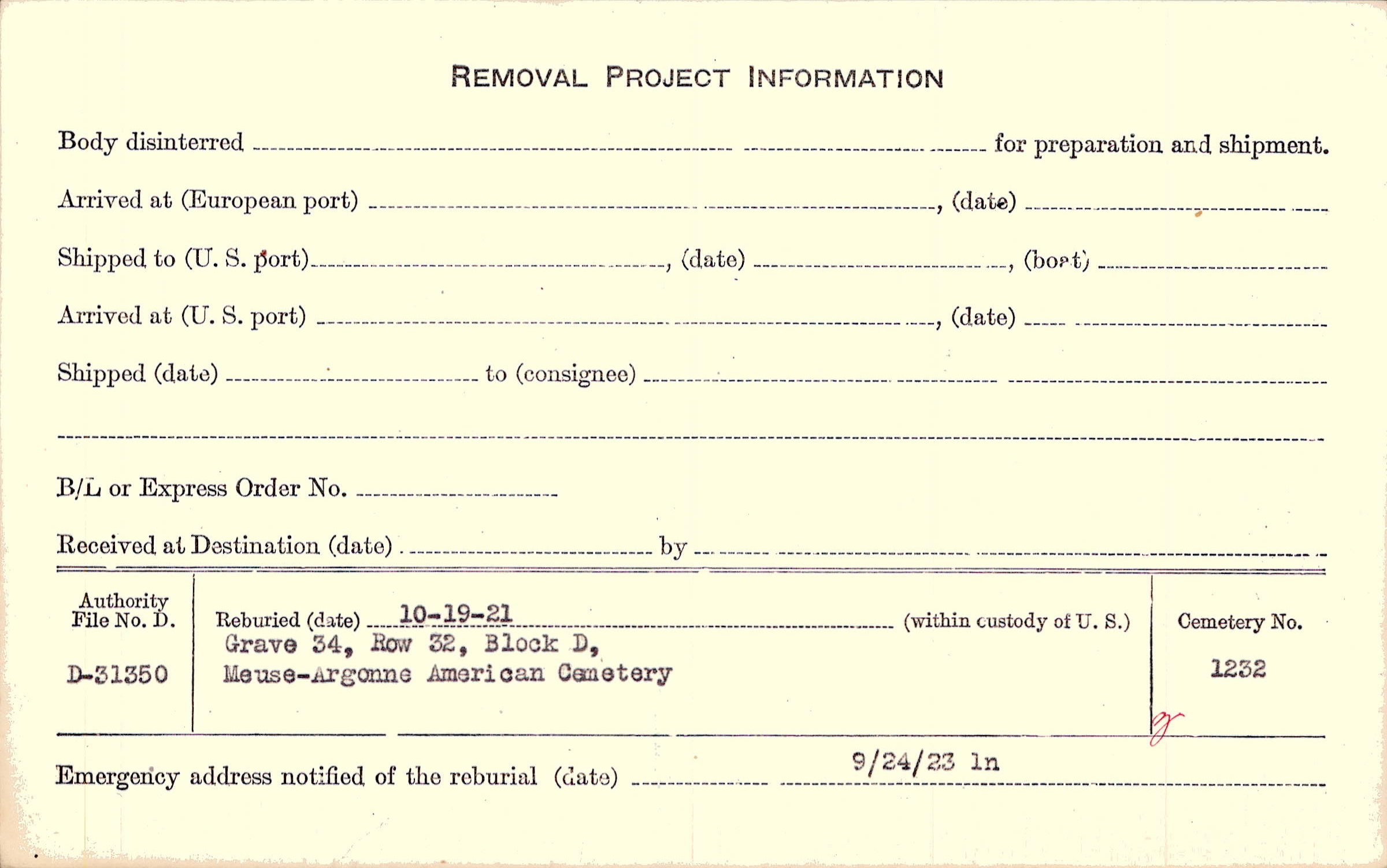 | Permanent Burial in Foreign Cemetery |
