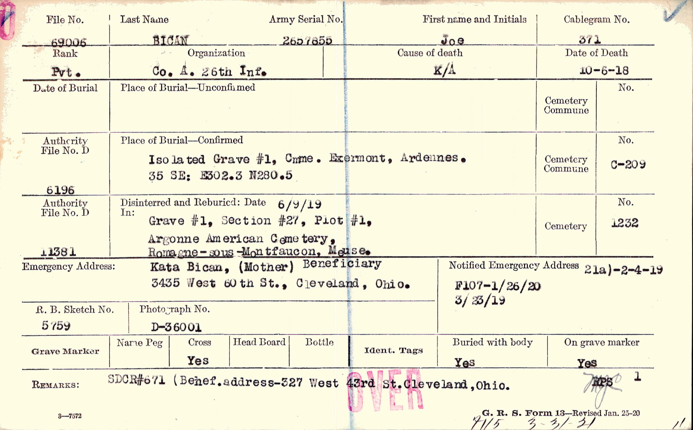 Kata Bican, (Mother), 3435 West 60th St., Cleveland, Ohio, Beneficiary