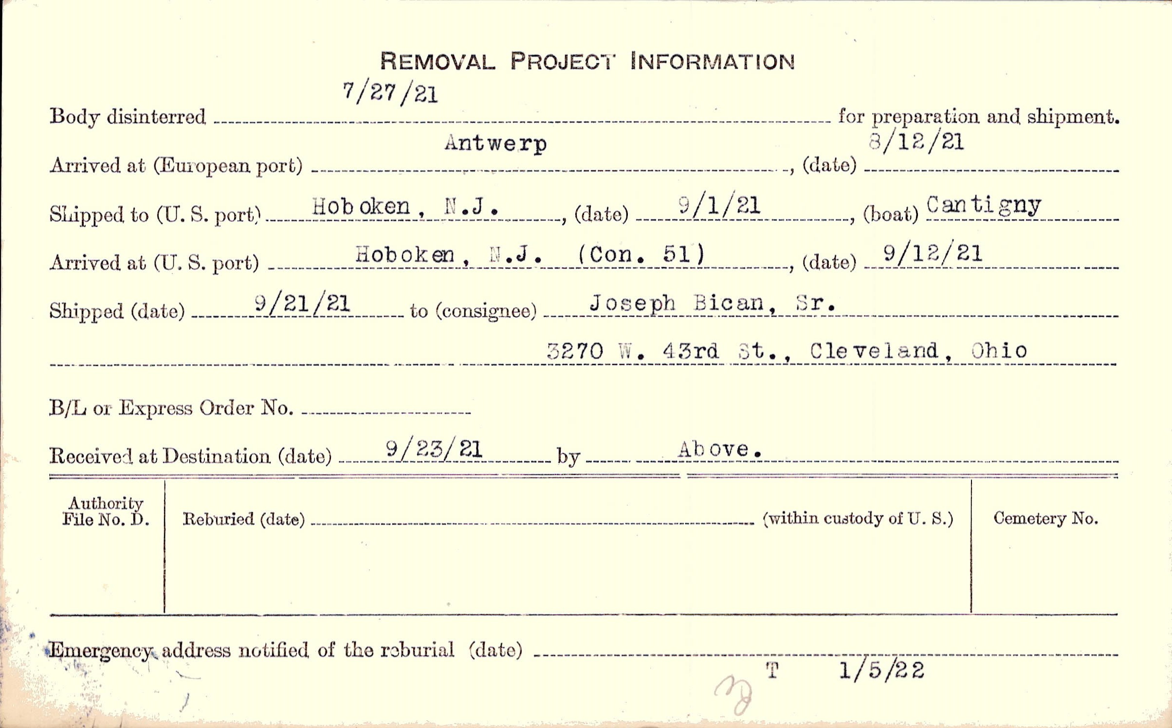 to Joseph Bican, Sr. 3270 W. 43rd St., Cleveland, Ohio