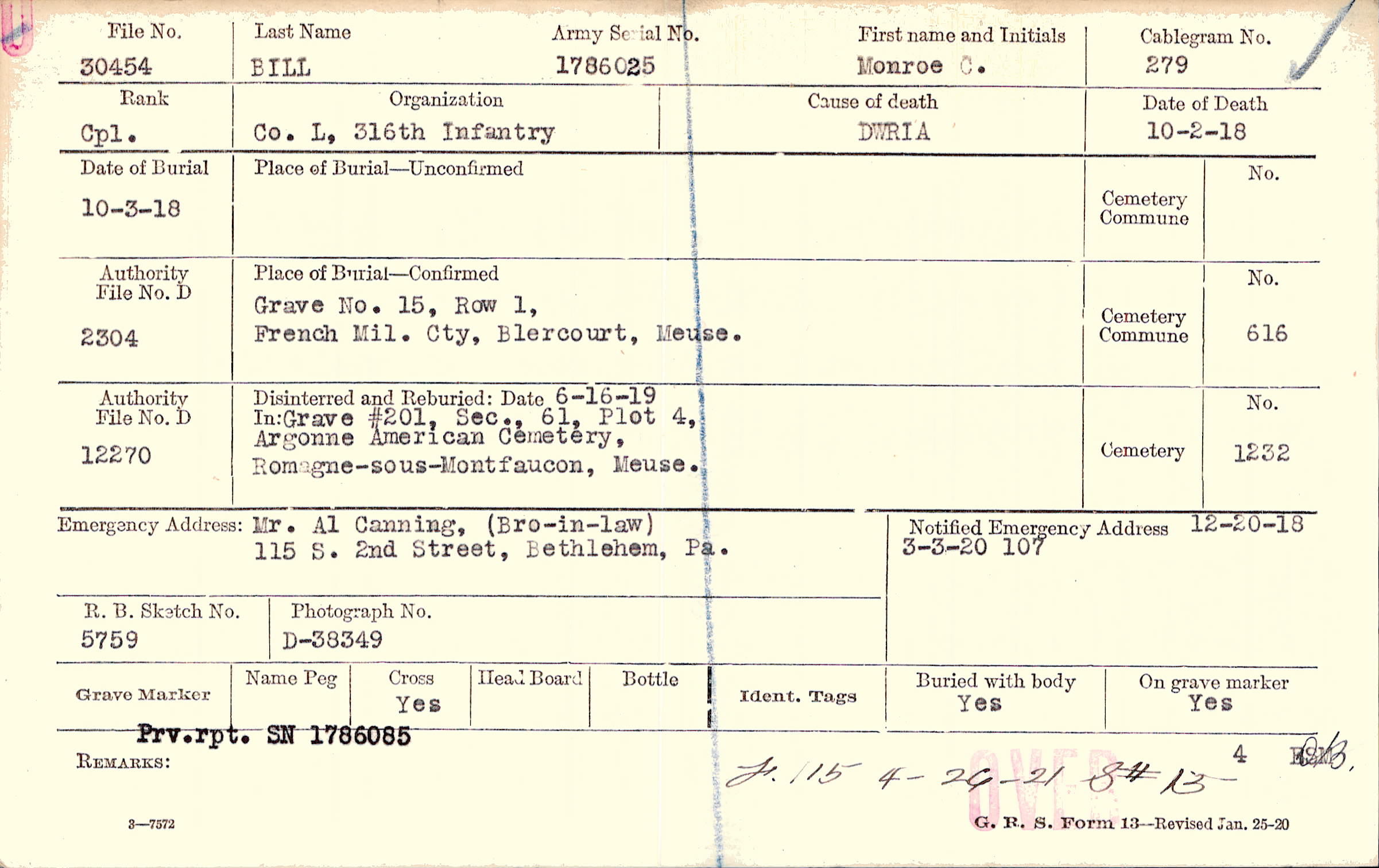 Grave 15, Row 1, French Mil. Cty, Blercourt, Meuse