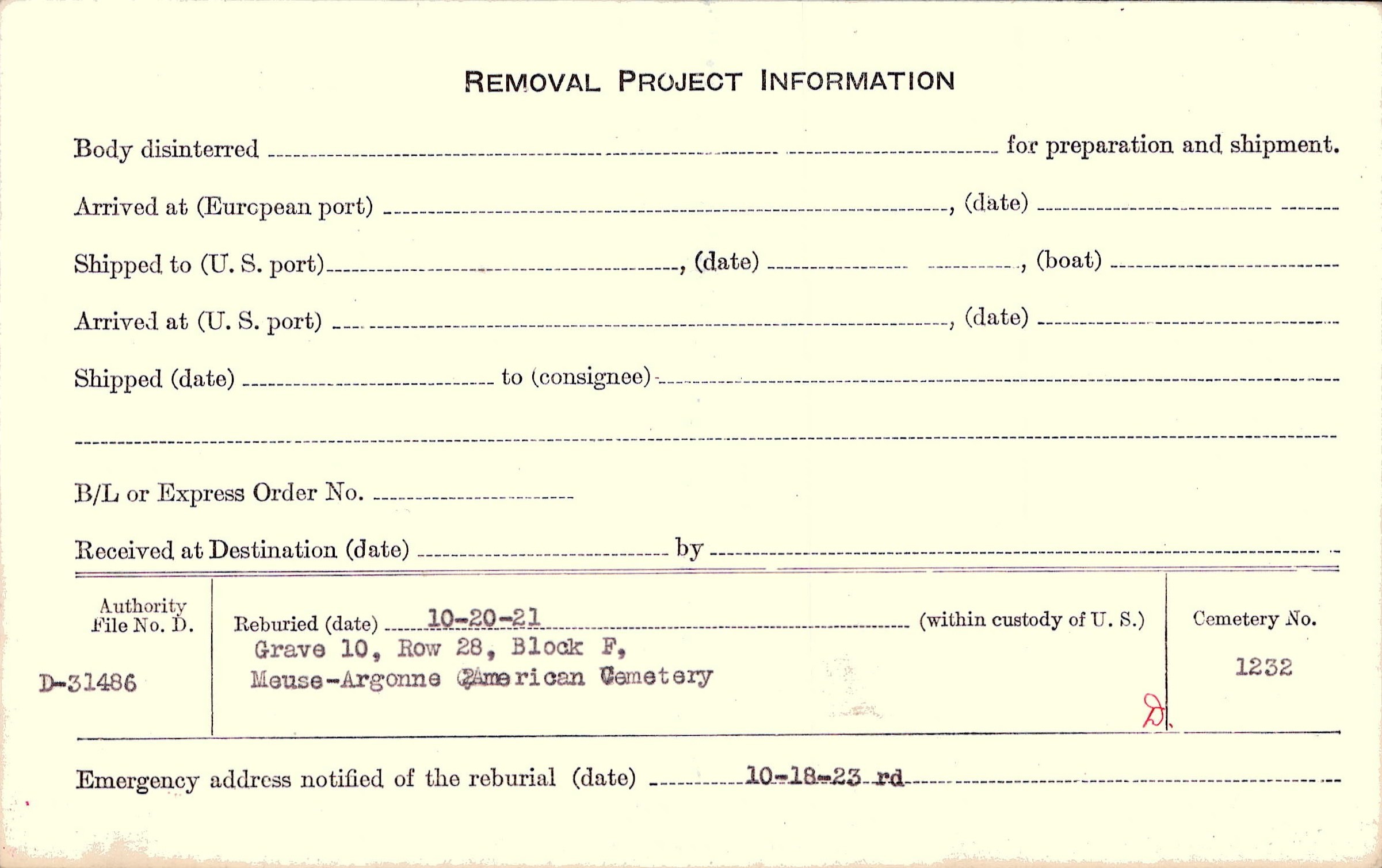 Grave 120, Section 102, Plot 3, Argonne American Cemetery, Romagne-sous-Montfaucon, Meuse
