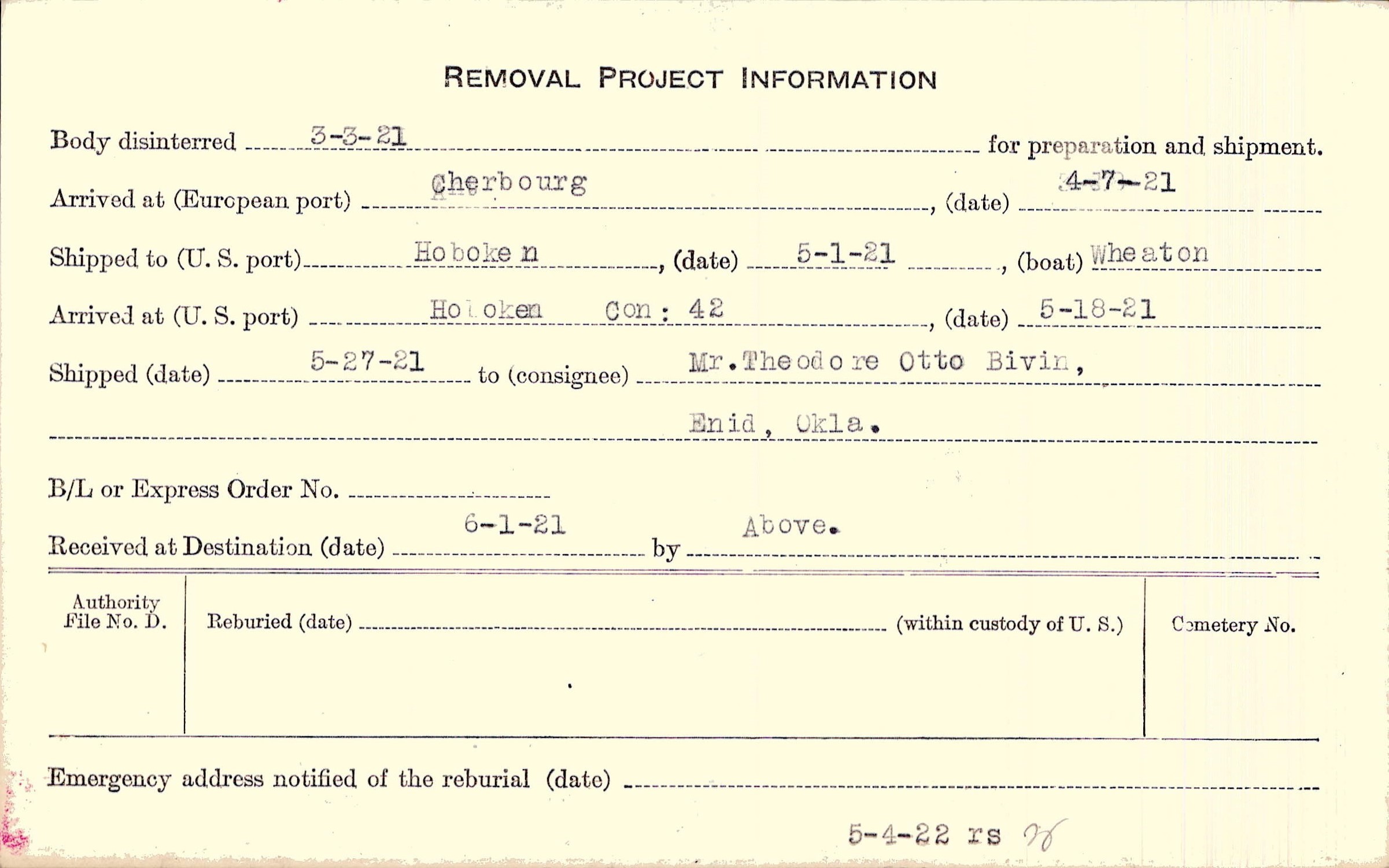 to Mr. Theodore Otto Bivin, Enid, Okla.