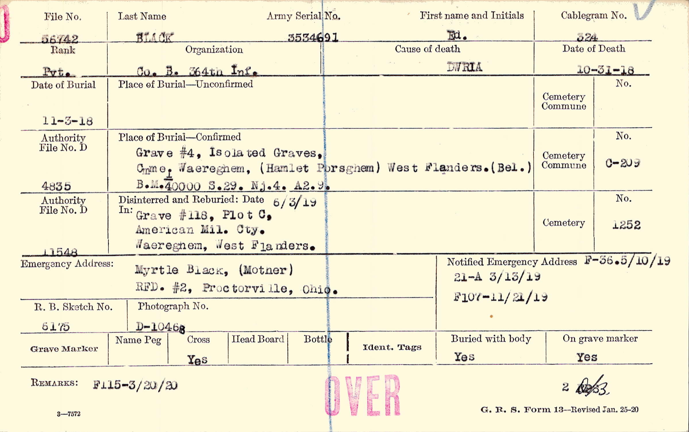 Myrtle Black, (Mother), RFD. #2, Proctorville, Ohio.