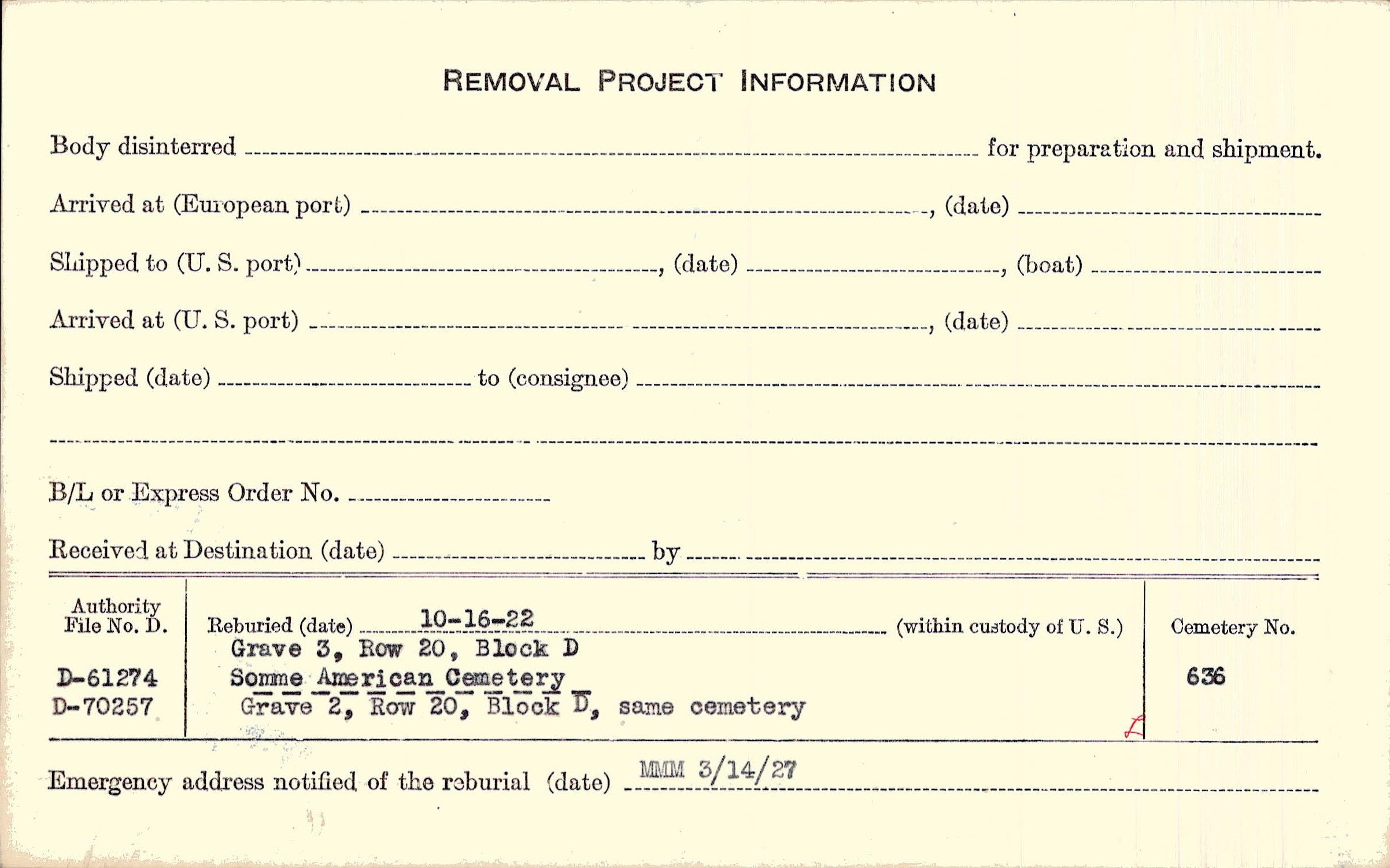 Prior Burial in Foreign Cemetery |