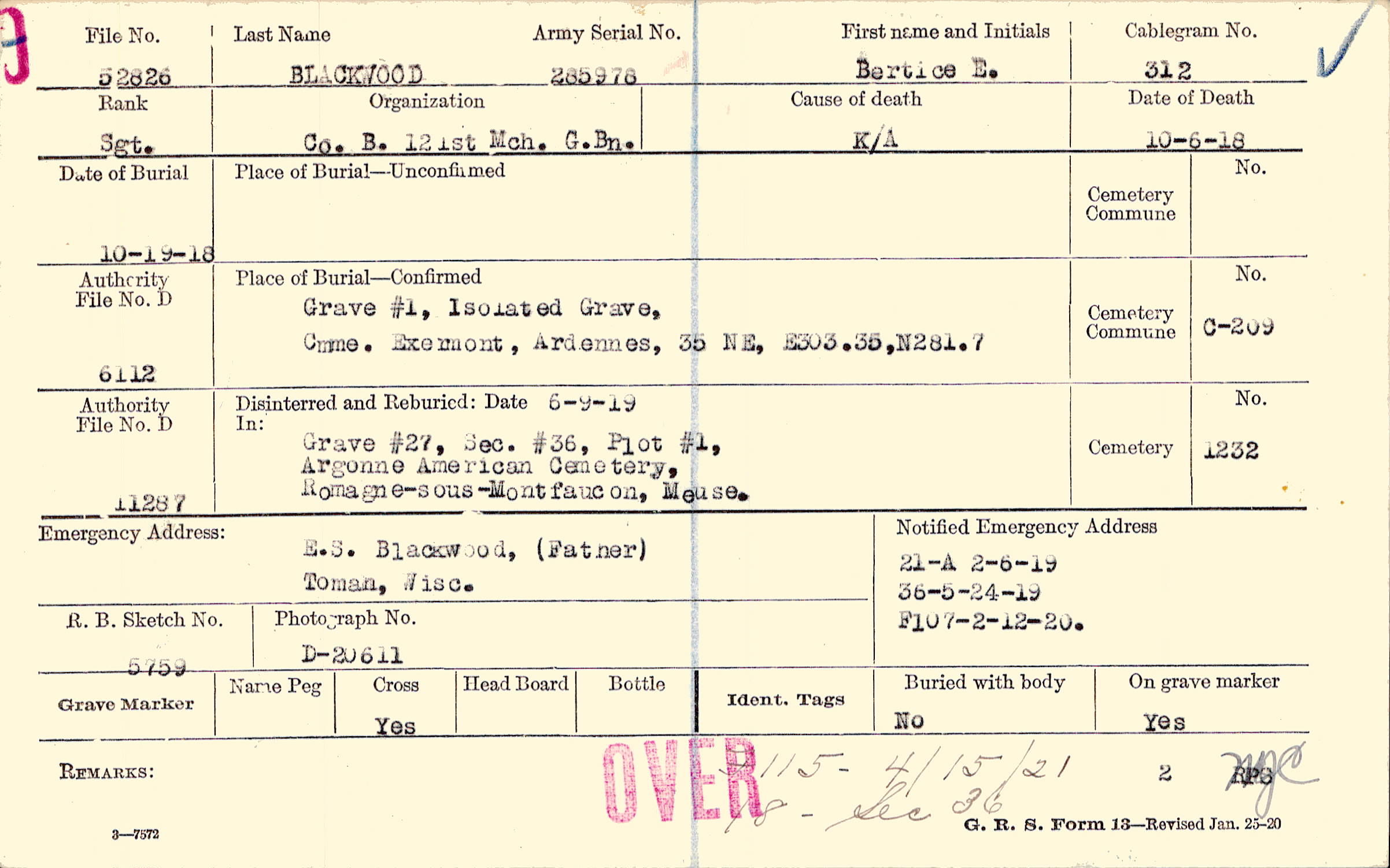 Grave #1, Isolated Grave, Cmme. Exermont, Ardennes, 35 NE,