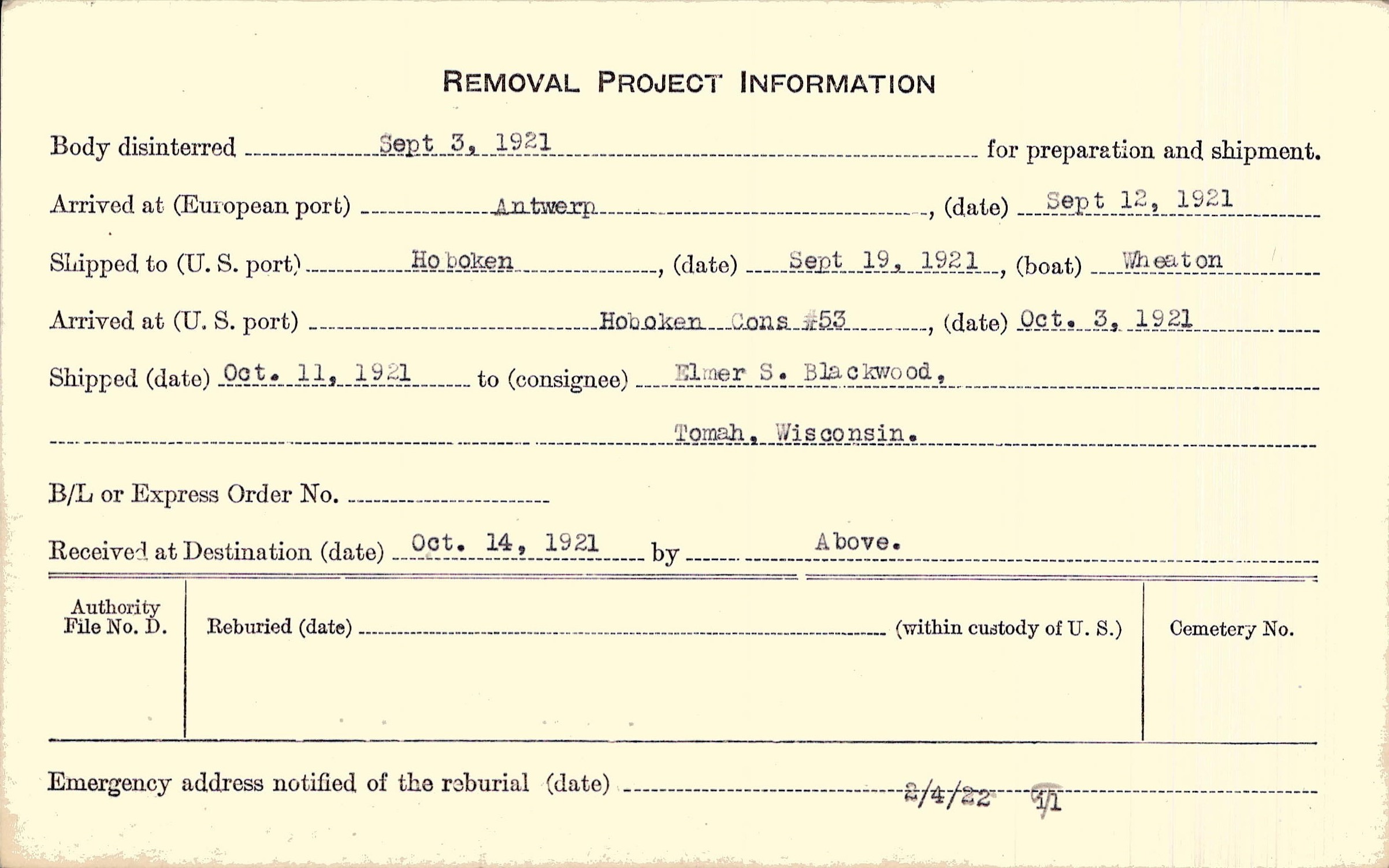 to Elmer S. Blackwood, Tomah, Wisconsin.