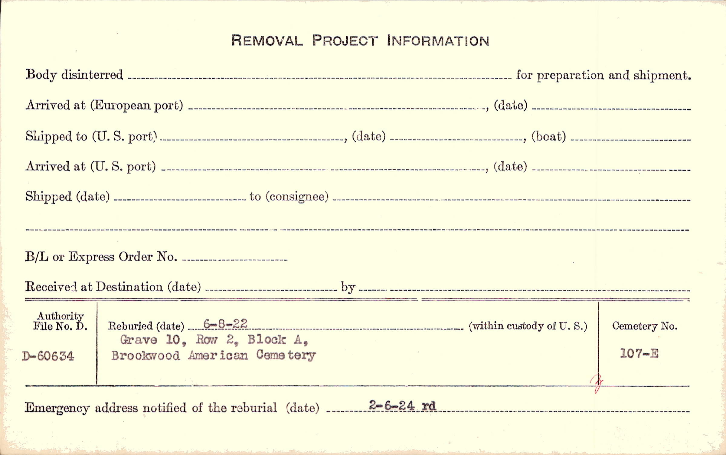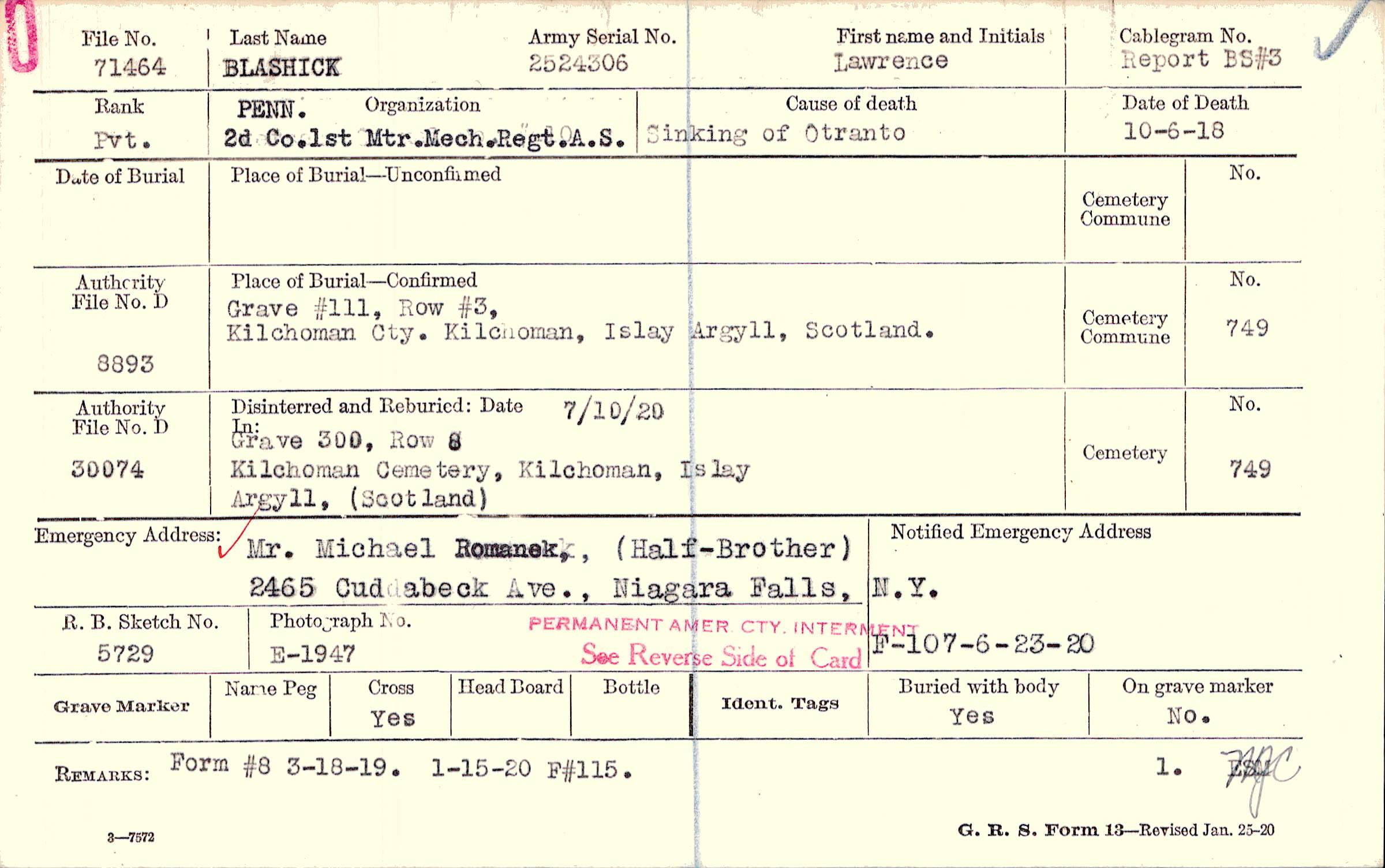 | Permanent Burial in Foreign Cemetery |