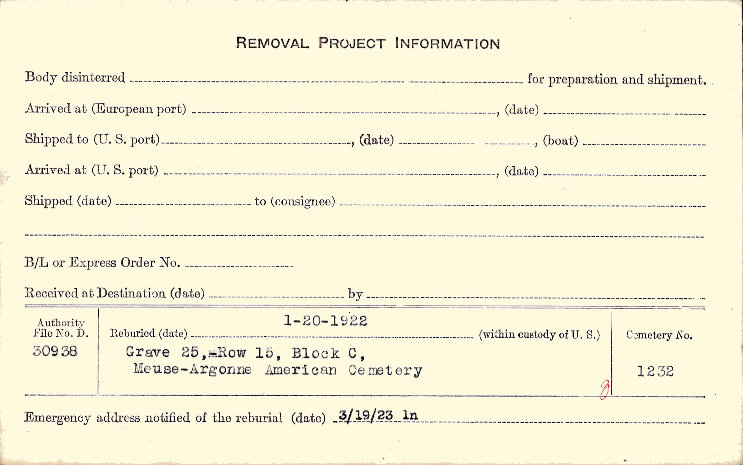 Grave 153, Section 12, Plot 3, Argonne American Cemetery, Romagne-sous-Montfaucon, Meuse