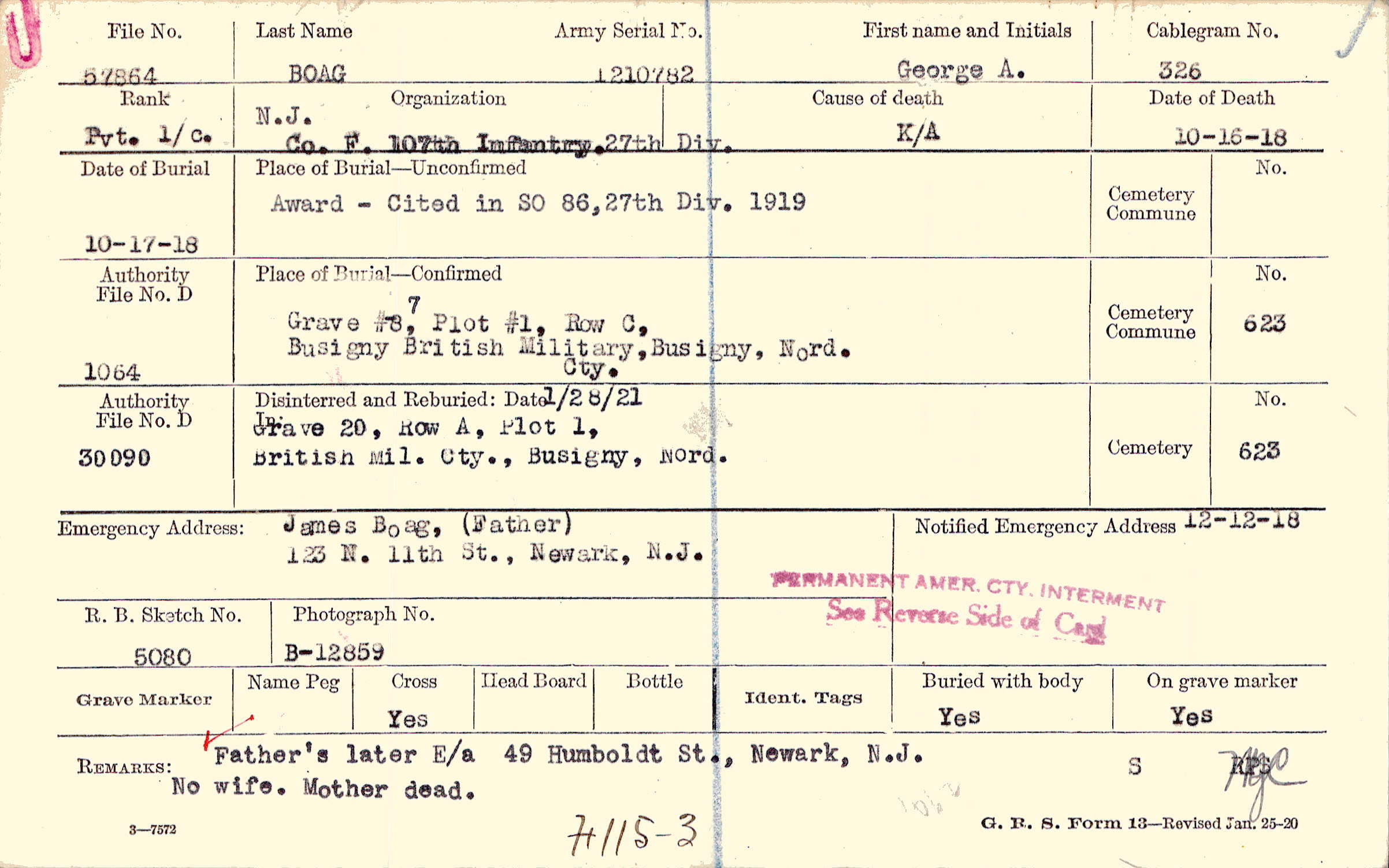 James Boag, (Father), 123 N. 11th St., Newark, N.J.