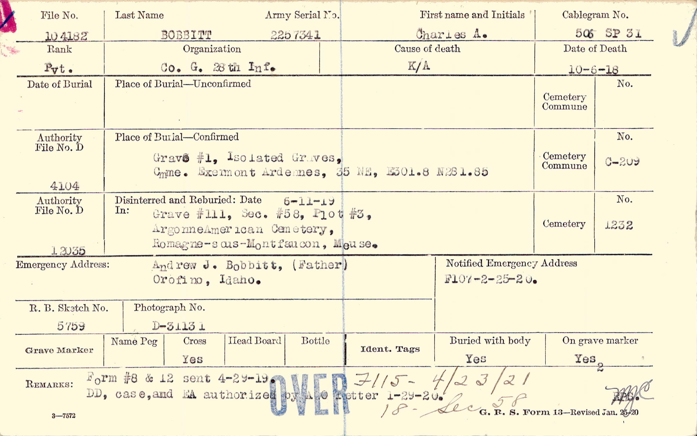 Andrew J. Bobbitt, (Father), Orofino, Idaho.